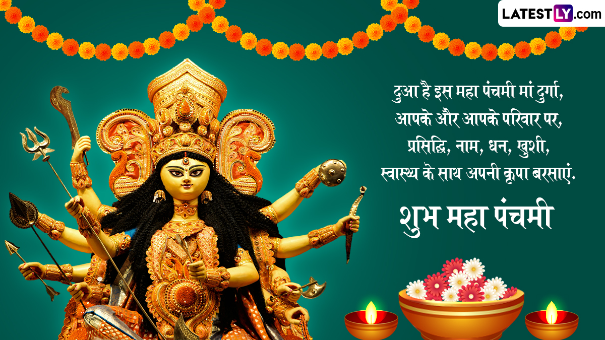 Maha Panchami 2025 Messages in Hindi: मां दुर्गा (Maa Durga) की भक्ति और उपासना के नौ दिवसीय उत्सव शारदीय नवरात्रि (Sharad Navratri) की हर तरफ धूम मची हुई है. हर तरफ मातारानी के जयकारे सुनाई दे रहे हैं और देश के तमाम देवी मंदिरों में भक्तों की भारी भीड़ देखने को मिल रही है. दरअसल, हर साल आश्विन मास के शुक्ल पक्ष की प्रतिपदा तिथि से शारदीय नवरात्रि की शुरुआत होती है और आश्विन मास के शुक्ल पक्ष की दशमी तिथि को विजयादशमी (Vijayadashami) यानी दशहरे (Dussehra) का त्योहार मनाया जाता है. वहीं शारदीय नवरात्रि की पंचमी तिथि का खास महत्व होता है. इस दिन जहां मां दुर्गा के पांचवें स्वरुप मां स्कंदमाता (Maa Skandamata) की पूजा की जाती है तो वहीं इस दिन ललिता पंचमी (Lalita Panchami) भी मनाई जाती है. इसके साथ ही यह दिन बंगाली समुदाय के लोगों के लिए भी खास माना जाता है, क्योंकि इस दिन मां दुर्गा का आह्वान किया जाता है, फिर अगले दिन यानी षष्ठी तिथि से पांच दिवसीय दुर्गा पूजा (Durga Puja) उत्सव का आरंभ हो जाता है.