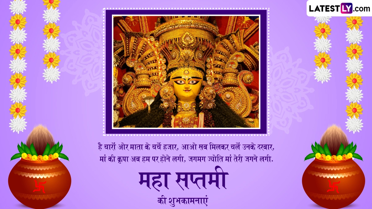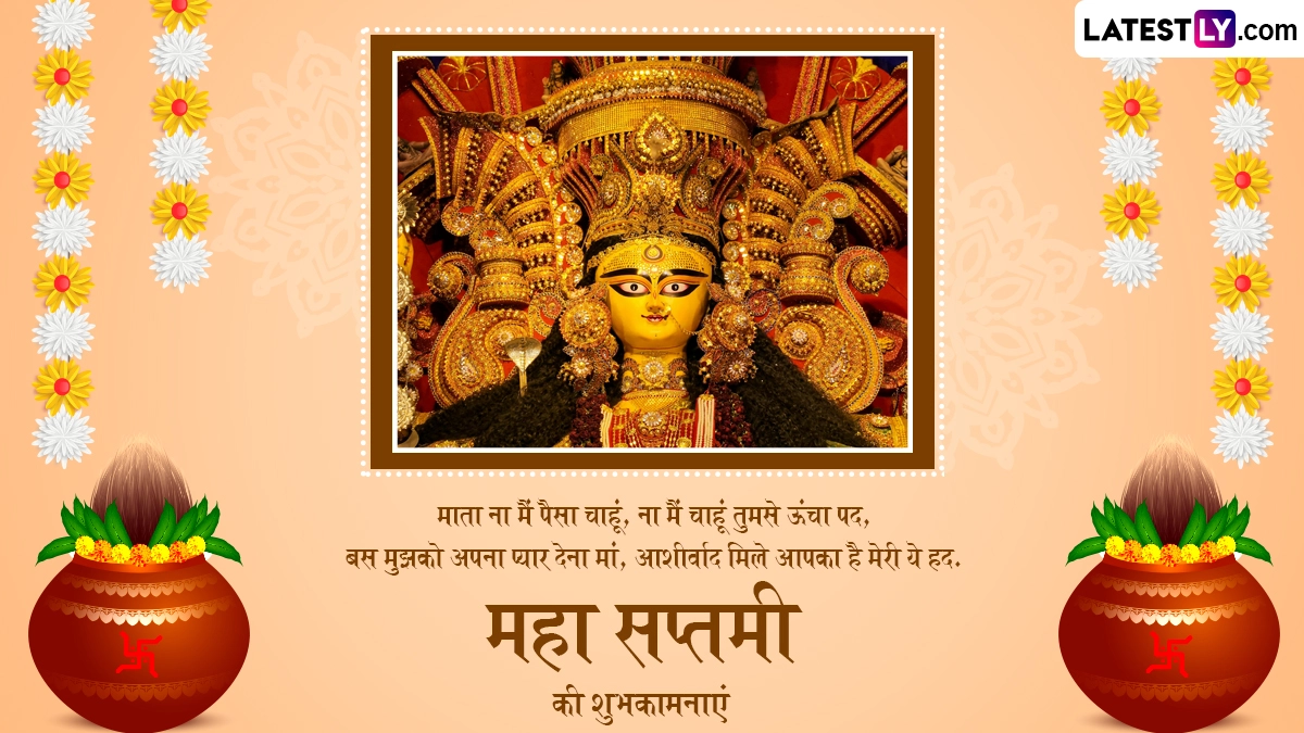 Maha Saptami 2024 Messages in Hindi: शारदीय नवरात्रि (Sharad Navratri) की धूम पूरे देश में मची हुई है, इसके साथ ही पांच दिवसीय दुर्गा पूजा (Durga Puja) की अनूठी छटा भी देखने को मिल रही है. जगह-जगह डांडिया, गरबा और रामलीलाओं का आयोजन किया गया है. वैसे तो नवरात्रि की हर तिथि का महत्व बताया जाता है, लेकिन अगर बात करें सप्तमी तिथि यानी महा सप्तमी (Maha Saptami) की तो इस दिन मां दुर्गा (Maa Durga) के सातवें स्वरूप मां कालरात्रि (Maa Kalratri) की पूजा की जाती है और यह पांच दिवसीय दुर्गा पूजा का दूसरा दिन होता है. इस साल शारदीय नवरात्रि की शुरुआत 03 अक्टूबर 2024 से हुई है, जबकि 8 अक्टूबर से दुर्गा पूजा का भव्य आगाज हुआ है, जिसका समापन 12 अक्टूबर 2024 को विजयादशमी के साथ होगा. ऐसी मान्यता है कि नौ दिनों तक मां दुर्गा ने दुष्ट असुर महिषासुर के साथ भयंकर युद्ध किया था, जिसके बाद दसवें दिन उन्होंने महिषासुर का संहार किया था और इस संसार को उसके आतंक से मुक्ति दिलाई थी.