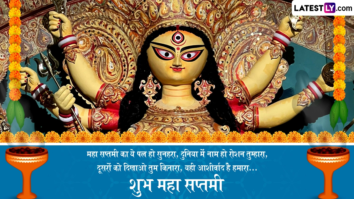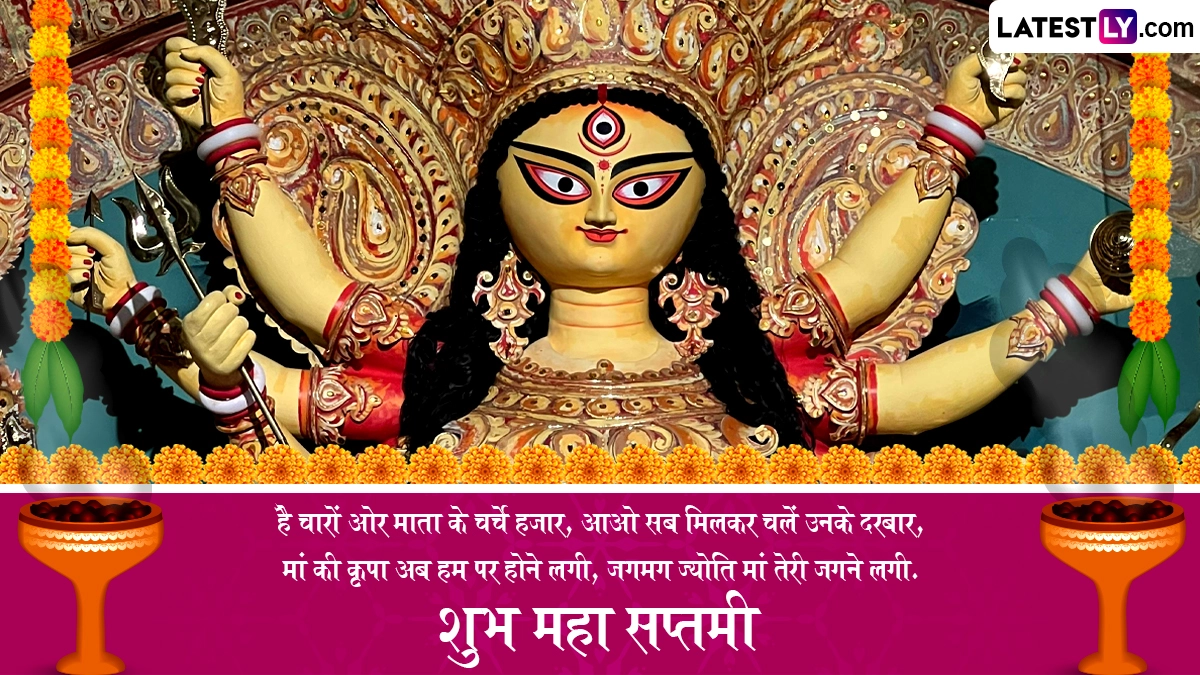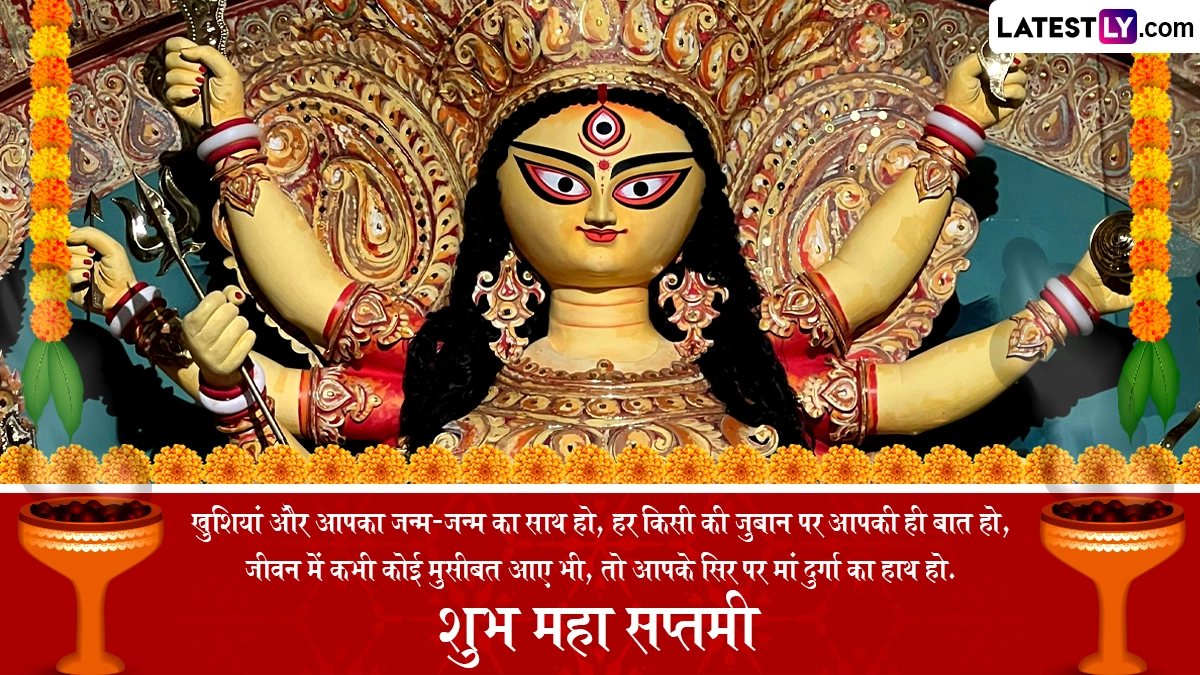 Maha Saptami 2025 Messages in Hindi: शारदीय नवरात्रि (Sharad Navratri) की इन दिनों पूरे देश में धूम मची हुई है, हर तरफ बस मां दुर्गा (Maa Durga) के जयकारे सुनाई दे रहे हैं और हर किसी पर उनकी भक्ति का रंग चढ़ा हुआ है. देश के विभिन्न हिस्सों में डांडिया, गरबा और रामलीलाओं का आयोजन किया गया है. वैसे तो नवरात्रि का हर दिन बेहद खास होता है और हर एक दिन मां दुर्गा के एक स्वरूप को समर्पित होता है. अगर, बात करें शारदीय नवरात्रि की सप्तमी तिथि की तो यह तिथि मां कालरात्रि (Maa Kalratri) को समर्पित है और यह पांच दिवसीय दुर्गा पूजा (Durga Puja) का दूसरा दिन होता है, इसलिए इसका विशेष महत्व बताया जाता है. इस साल शारदीय नवरात्रि की शुरुआत 22 सितंबर 2025 से हुई है, जबकि 28 सितंबर 2025 से दुर्गा पूजा का भव्य आगाज हुआ है, जिसका समापन 2 अक्टूबर 2025 को विजयादशमी के साथ होगा. कहा जाता है कि मां दुर्गा ने नौ दिनों तक दुष्ट असुर महिषासुर से युद्ध किया था और दसवें दिन उन्होंने उसका अंत किया था, इसलिए मां दुर्गा की महिषासुर विजय के जश्न को मनाने के लिए विजयादशमी का त्योहार मनाया जाता है.