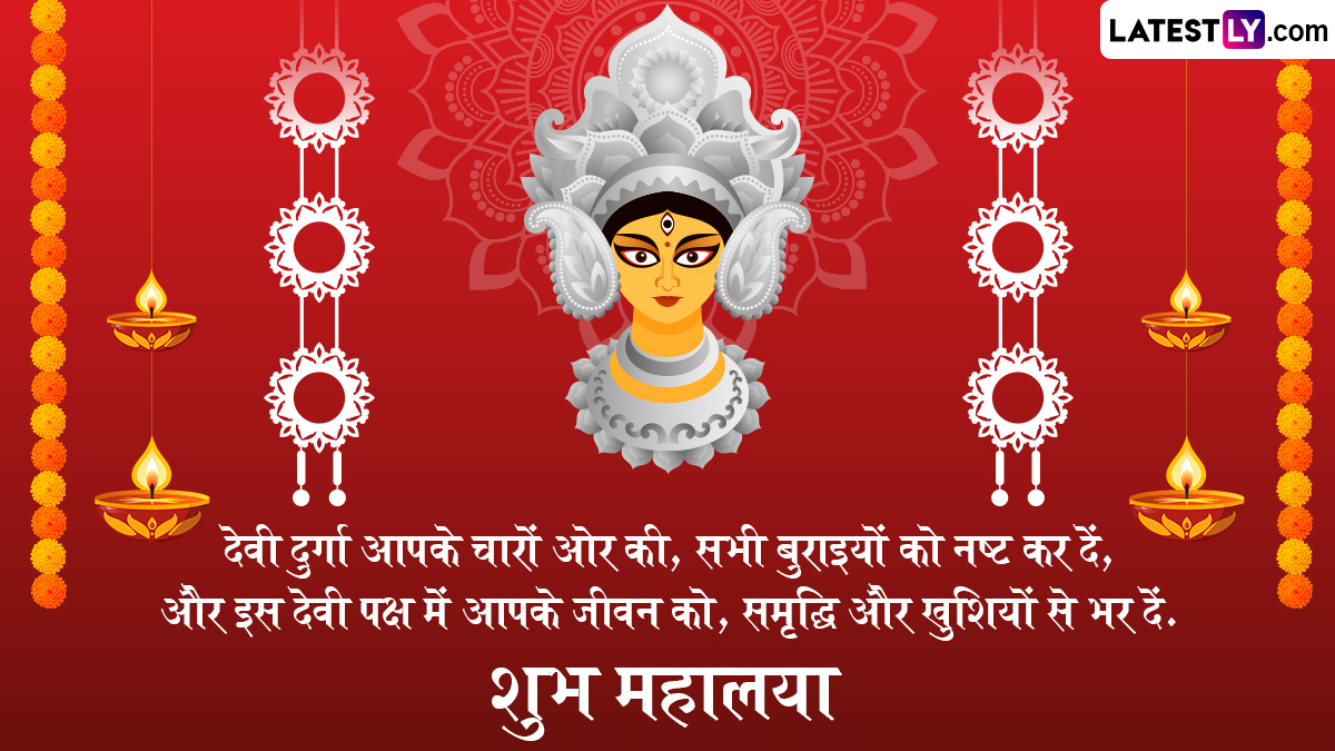मान्यता है कि अपने भक्तों की पुकार पर मां दुर्गा कैलाश पर्वत से यात्रा कर पृथ्वीवासियों के बीच रहने के लिए आती हैं. देवी दुर्गा के आह्वान और उनके धरती पर आगमन को महालया कहते हैं, इसलिए इसका काफी महत्व बताया जाता है. ऐसे में इस खास अवसर पर आप इन हिंदी मैसेजेस, वॉट्सऐप विशेज, जीआईएफ ग्रीटिंग्स, कोट्स और फोटो एसएमएस के जरिए प्रियजनों से शुभ महालया कह सकते हैं.