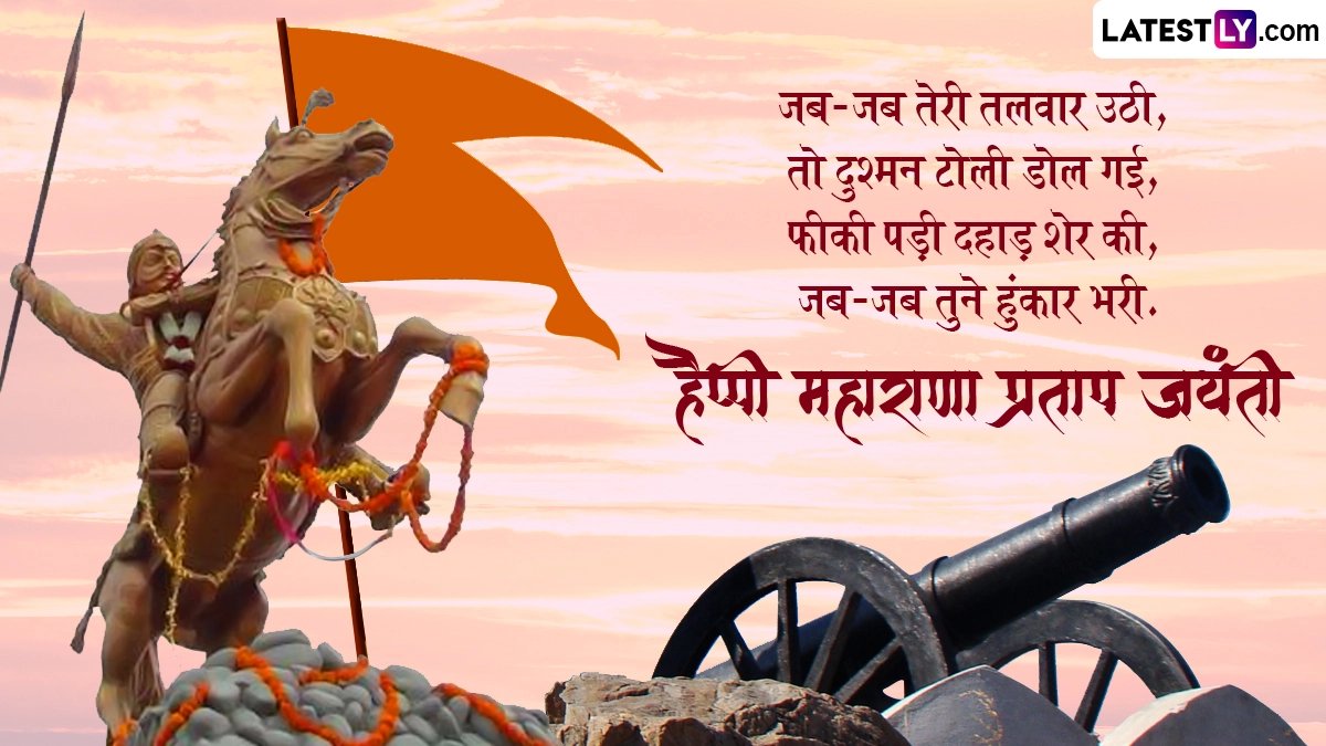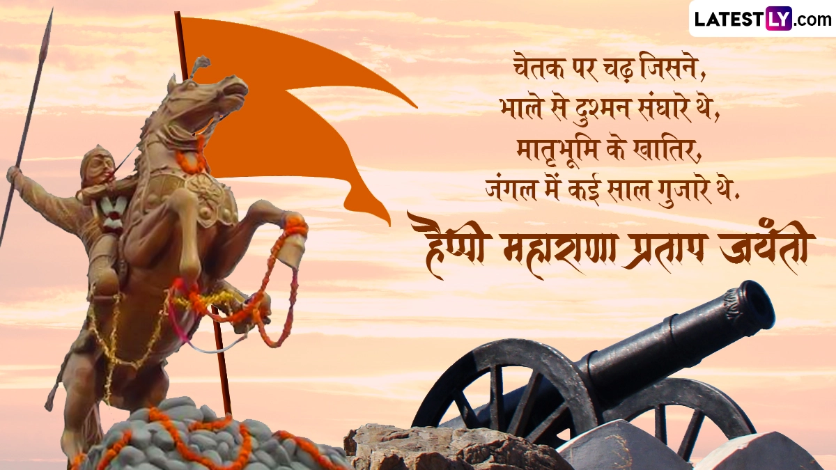 Maharana Pratap Jayanti 2024 Messages in Hindi: राजस्थान (Rajasthan) की धरती पर जन्में महाराणा प्रताप (Maharana Pratap) एक ऐसे महान योद्धा और युद्ध रणनीति में कुशल राजा थे, जिन्होंने बार-बार मुगलों के हमले से मेवाड़ और वहां की जनता की रक्षा की. उनके सामने न जाने कितनी ही विकट परिस्थियां आईं, लेकिन उन्होंने कभी भी अपना सिर दुश्मन के सामने नहीं झुकाया. मेवाड़ के महान राजपूत शासक महाराणा प्रताप की जयंती (Maharana Pratap Jayanti) हर साल 9 मई को मनाई जाती है, जबकि हिंदू पंचांग के अनुसार उनकी जयंती ज्येष्ठ मास के शुक्ल पक्ष की तृतीया को मनाई जाती है, जिसके हिसाब से आज (9 जून 2024) उनकी जयंती मनाई जा रही है. उनका जन्म 9 मई 1540 को मेवाड़ (Mewad) के कुंभलगढ़ में राजपूत राज परिवार के उदय सिंह द्वितीय और महारानी जयवंता बाई के घर हुआ था.