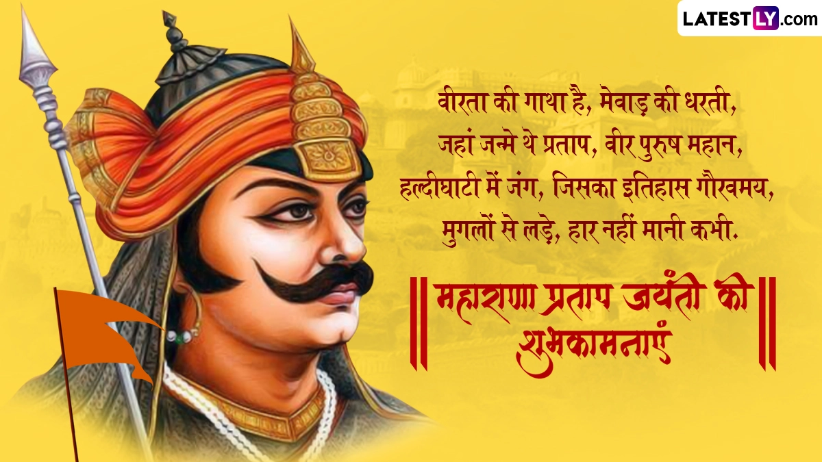 Maharana Pratap Jayanti 2024 Wishes in Hindi: भारत के वीर और शूरवीर योद्धा महाराणा प्रताप (Maharana Pratap) को मेवाड़ का शेर भी कहा जाता है. अंग्रेजी कैलेंडर के अनुसार, उनका जन्म 9 मई 1540 को राजस्थान (Rajasthan) के चित्तौड़गढ़ में हुआ था, इसलिए हर साल 9 मई को महाराणा प्रताप जयंती (Maharana Pratap Jayanti) धूमधाम से मनाई जाती है, जबकि हिंदू पंचांग के अनुसार, महाराणा प्रताप का जन्म ज्येष्ठ मास के शुक्ल पक्ष की तृतीया तिथि को हुआ था, इसलिए इस साल तिथि के हिसाब से 9 जून को महाराणा प्रताप जयंती मनाई जा रही है, जो न सिर्फ राजस्थान के लिए, बल्कि पूरे देश के लिए बेहद खास दिन है. भारत के इतिहास के सबसे प्रसिद्ध राजपूत योद्धाओं में से एक महाराणा प्रताप अपनी वीरता और साहस के लिए जाने जाते हैं. 16वीं शताब्दी में मुगल सम्राट अकबर के खिलाफ उनकी वीरता और अदम्य साहस की कहानियां आज भी लोगों को प्रेरित करती हैं.