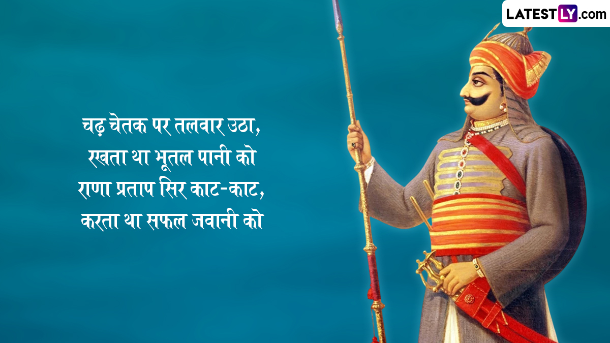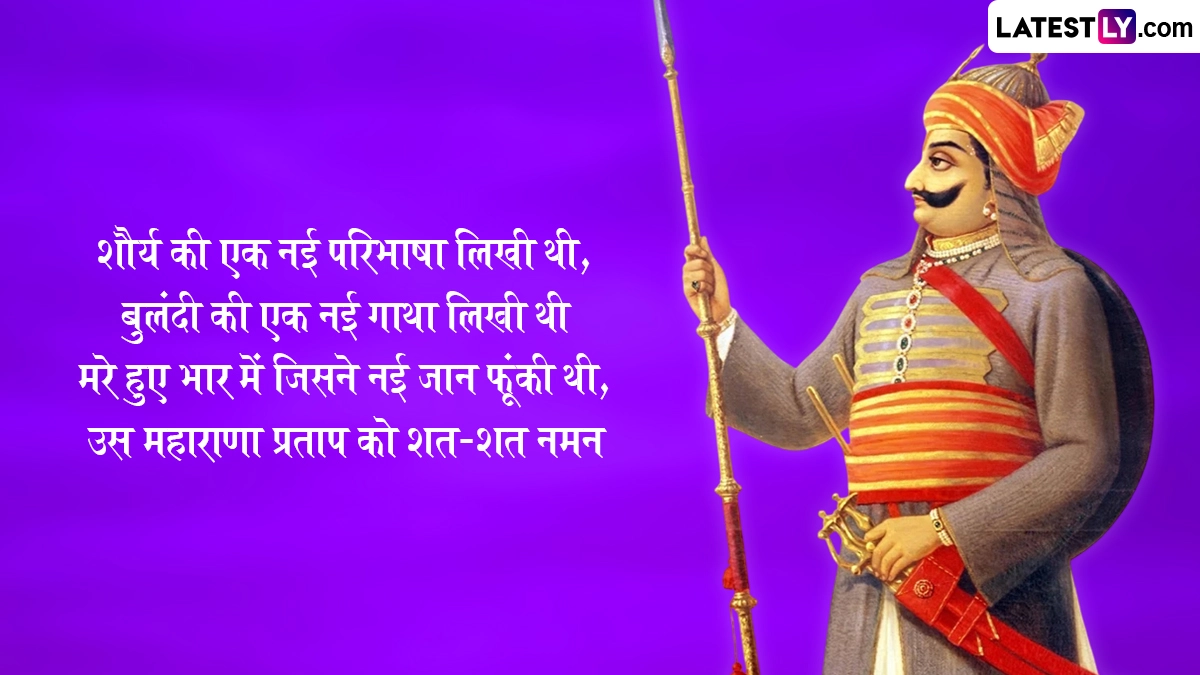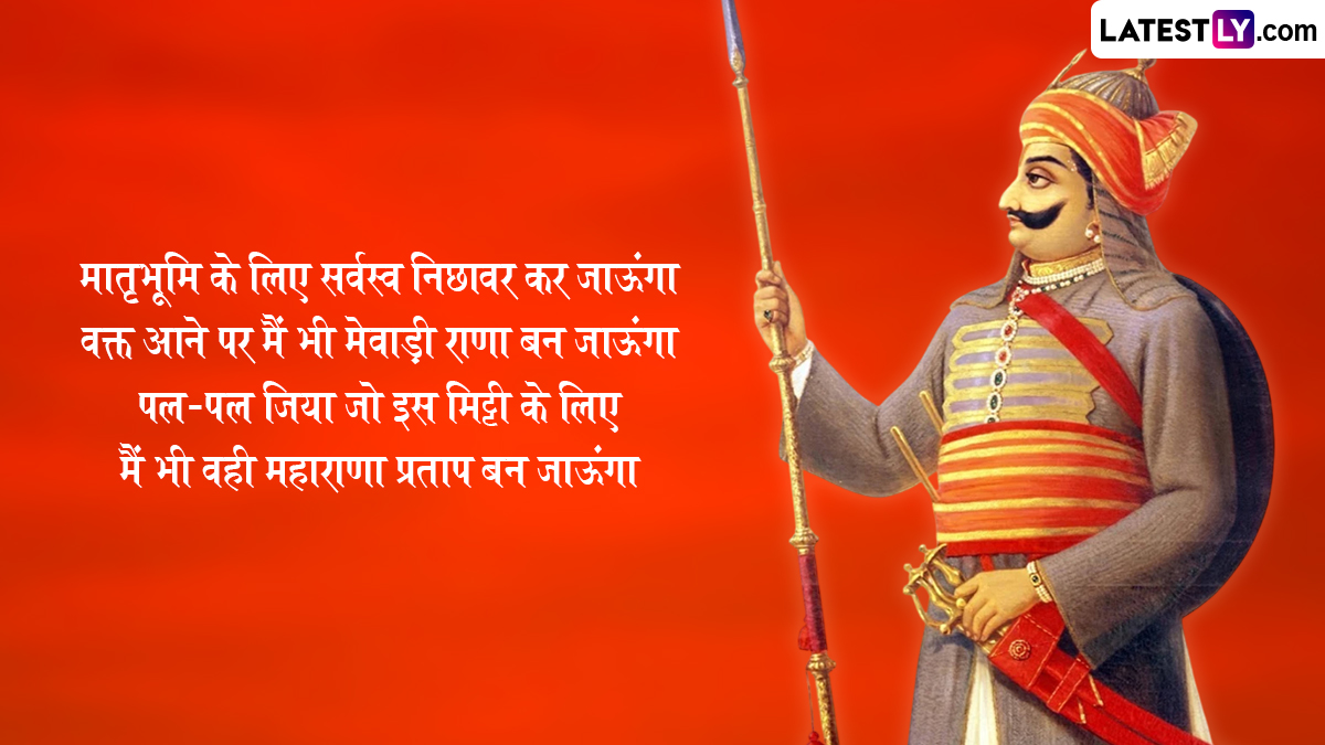 अपनी वीरता, रणनीतिक युद्ध और गहरी देशभक्ति के लिए जाने जाने वाले महाराणा प्रताप की जीवनी हल्दीघाटी के युद्ध जैसी ऐतिहासिक लड़ाइयों से चिह्नित है, जहाँ उन्होंने भारी बाधाओं के बावजूद साहस के साथ लड़ाई लड़ी. उनकी विरासत उनकी बहादुरी, उनके वफादार घोड़े चेतक और अपने राज्य की स्वतंत्रता को बनाए रखने के लिए उनके बेजोड़ समर्पण की कहानियों के माध्यम से जीवित है. ऐसे में आप इन हिंदी विशेज, वॉट्सऐप मैसेजेस, फेसबुक ग्रीटिंग्स, फोटो एसएमएस को भेजकर अपनों को महाराणा प्रताप जयंती की शुभकामनाएं दे सकते हैं.