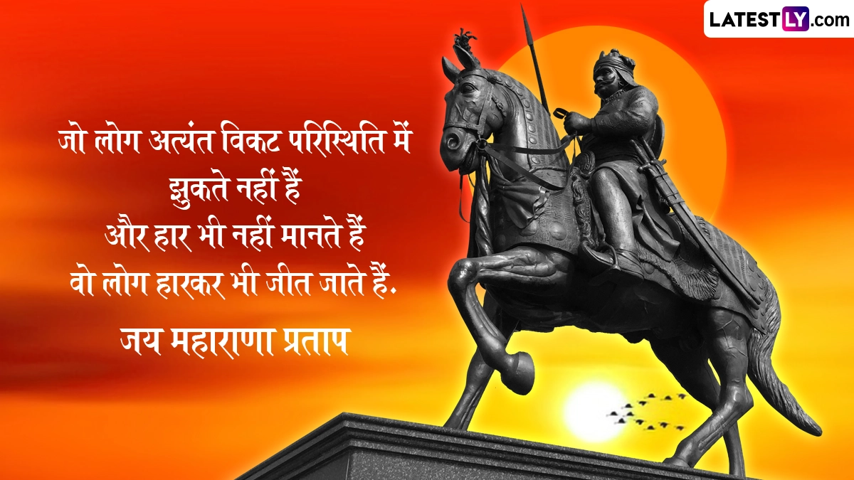 महाराणा प्रताप वर्तमान राजस्थान में मेवाड़ साम्राज्य के 13वें शासक थे. सिसोदिया राजवंश के एक महान राजपूत योद्धा, उन्हें मुगल साम्राज्य, विशेष रूप से सम्राट अकबर के खिलाफ उनके अटूट प्रतिरोध के लिए सम्मानित किया जाता है. साथ ही शुभकामना संदेशों का आदान-प्रदान किया जाता है. ऐसे में इस खास अवसर पर आप इन हिंदी विशेज, कोट्स, फेसबुक मैसेजेस, वॉट्सऐप स्टेटस को शेयर कर अपने प्रियजनों को शुभकामनाएं दे सकते हैं.