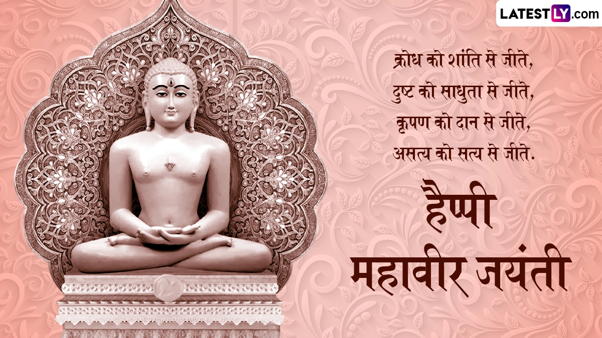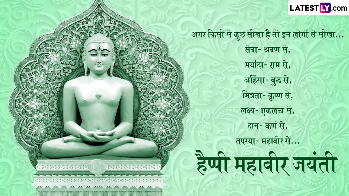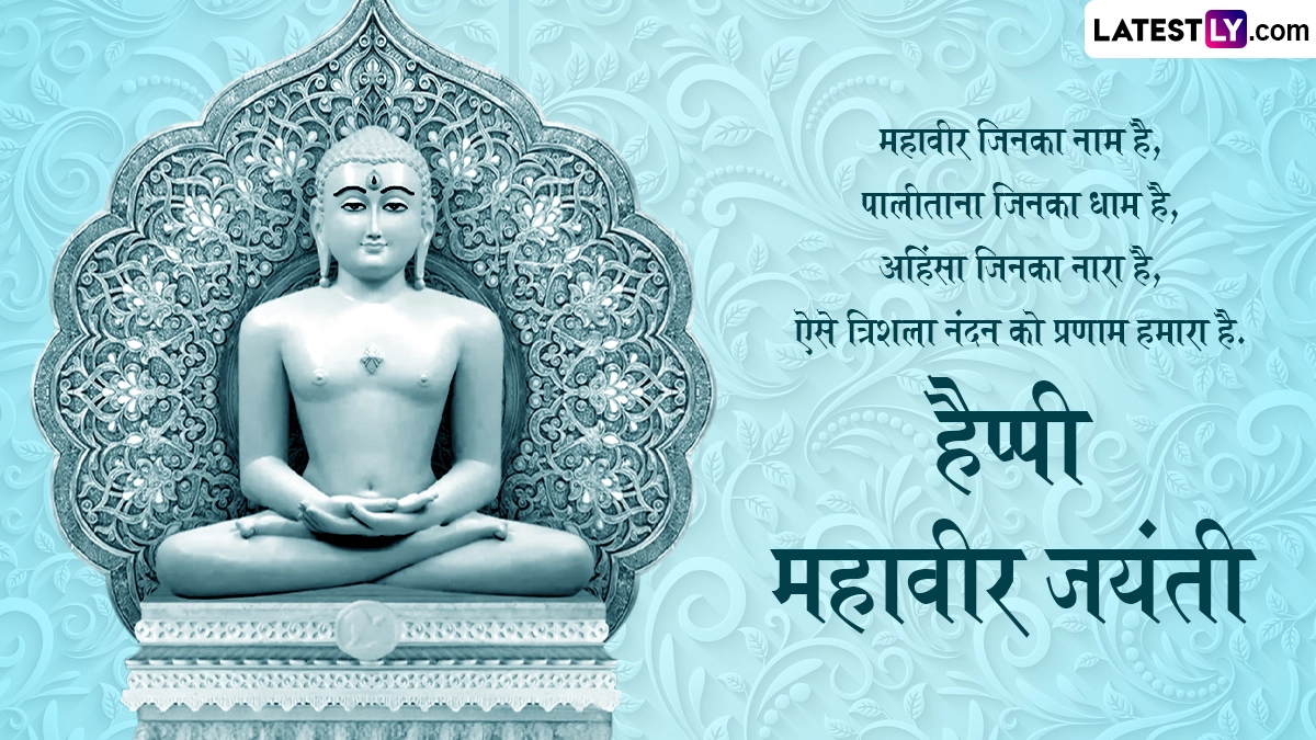 अहिंसा को सबसे उच्चतम नैतिक गुण बताने वाले भगवान महावीर को 72 साल की उम्र में पावापुरी में मोक्ष की प्राप्ति हुई थी. जैन धर्म के 24वें तीर्थंकर भगवान महावीर की जयंती को लोग धूमधाम से सेलिब्रेट करते हैं. इस अवसर पर जैन धर्म के लोग प्रभातफेरी निकालते हैं, फिर भव्य जुलूस के साथ पालकी यात्रा निकाली जाती है. ऐसे में आप इन हिंदी मैसेजेस, कोट्स, वॉट्सऐप विशेज, जीआईएफ ग्रीटिंग्स के जरिए दोस्तों रिश्तेदारों से हैप्पी महावीर जयंती कह सकते हैं.