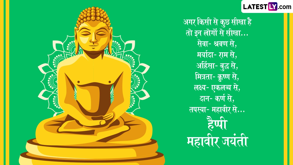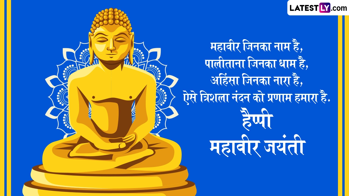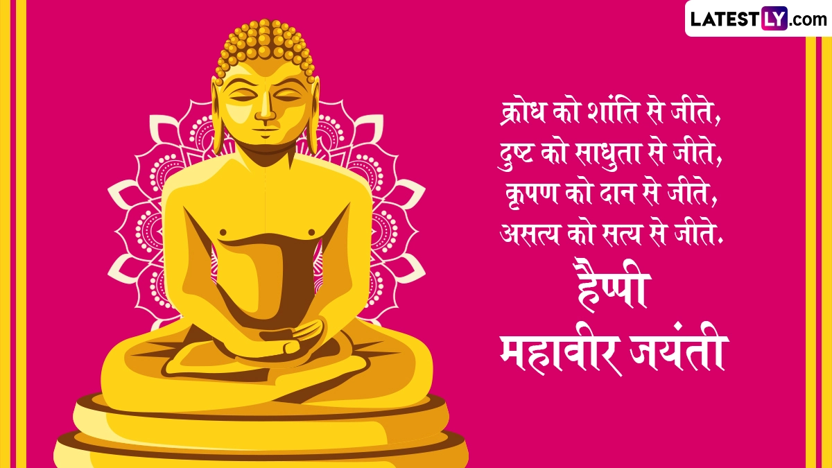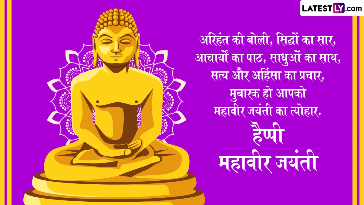 जैन धर्म के 24वें तीर्थंकर भगवान महावीर के जन्म कल्याणक के अवसर पर श्रद्धालु प्रभातफेरी और पालकी यात्राएं निकाल रहे हैं. इस डिजिटल युग में आप अपनों को महावीर जयंती पर शांति और सद्भाव का संदेश भेज सकते हैं. ऐसे में आप भी इन हिंदी मैसेजेस, कोट्स, वॉट्सऐप विशेज, जीआईएफ ग्रीटिंग्स, फोटो एसएमएस के जरिए प्रियजनों को हैप्पी महावीर जयंती कह सकते हैं.
