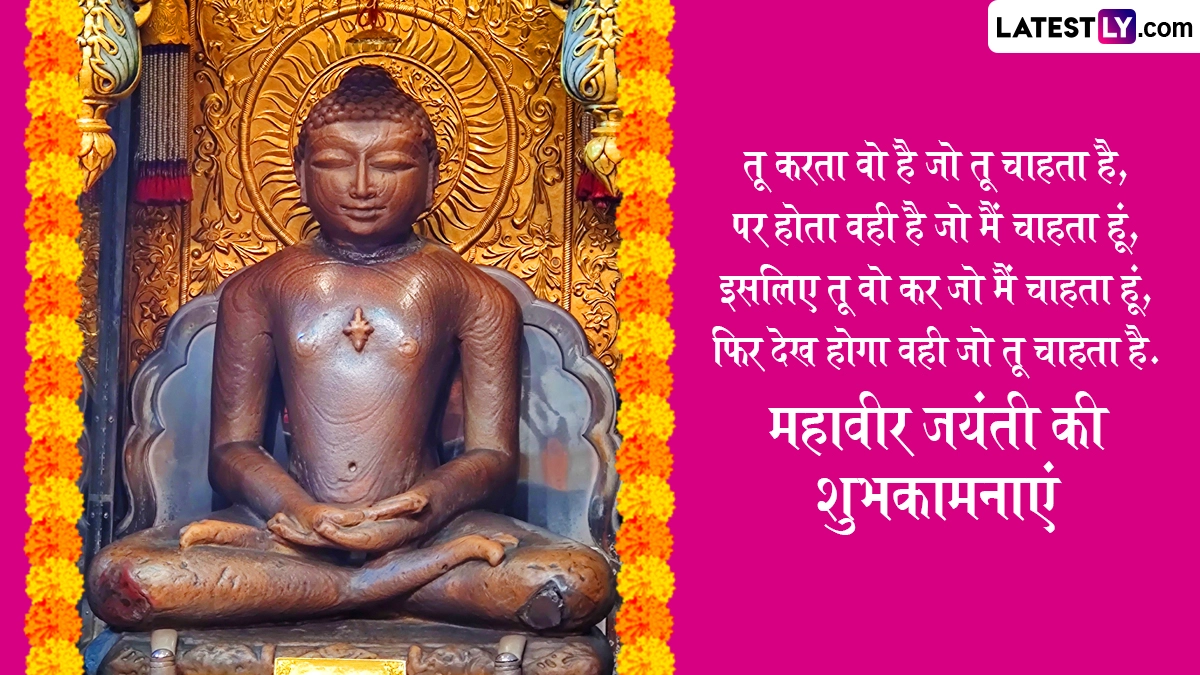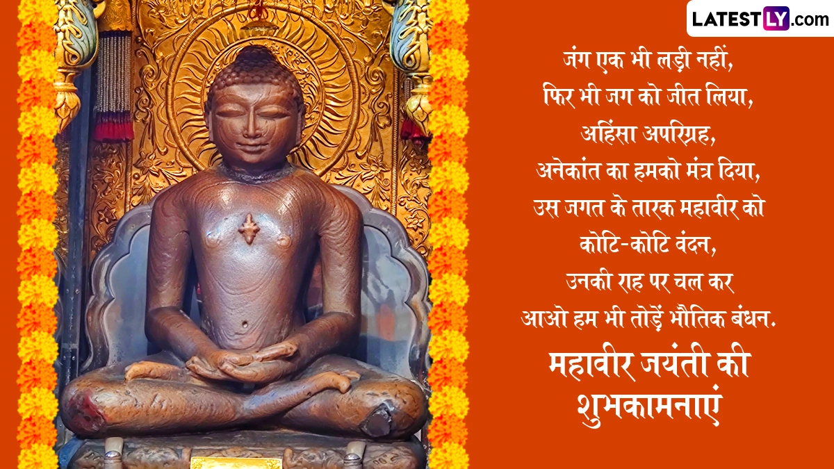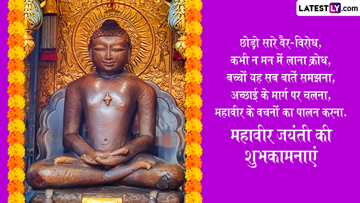 महावीर जयंती पर भगवान महावीर के सिद्धांतों को याद करते हुए भक्त प्रभातफेरी और जुलूस निकालते हैं, साथ ही शुभकामना संदेशों का आदान-प्रदान किया जाता है. ऐसे में इस खास मौके पर आप भी इन शानदार हिंदी विशेज, कोट्स, वॉट्सऐप मैसेजेस, फेसबुक मैसेजेस के जरिए अपनों को शुभकामनाएं दे सकते हैं.
