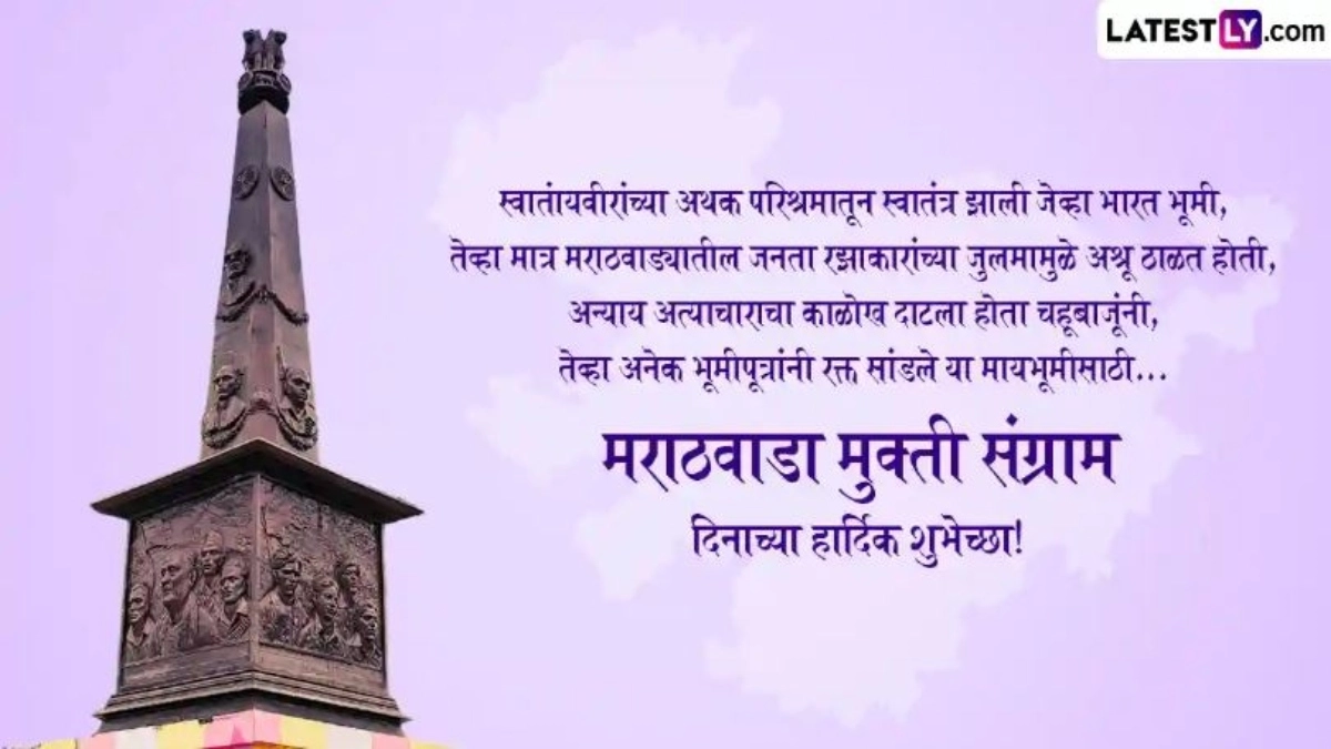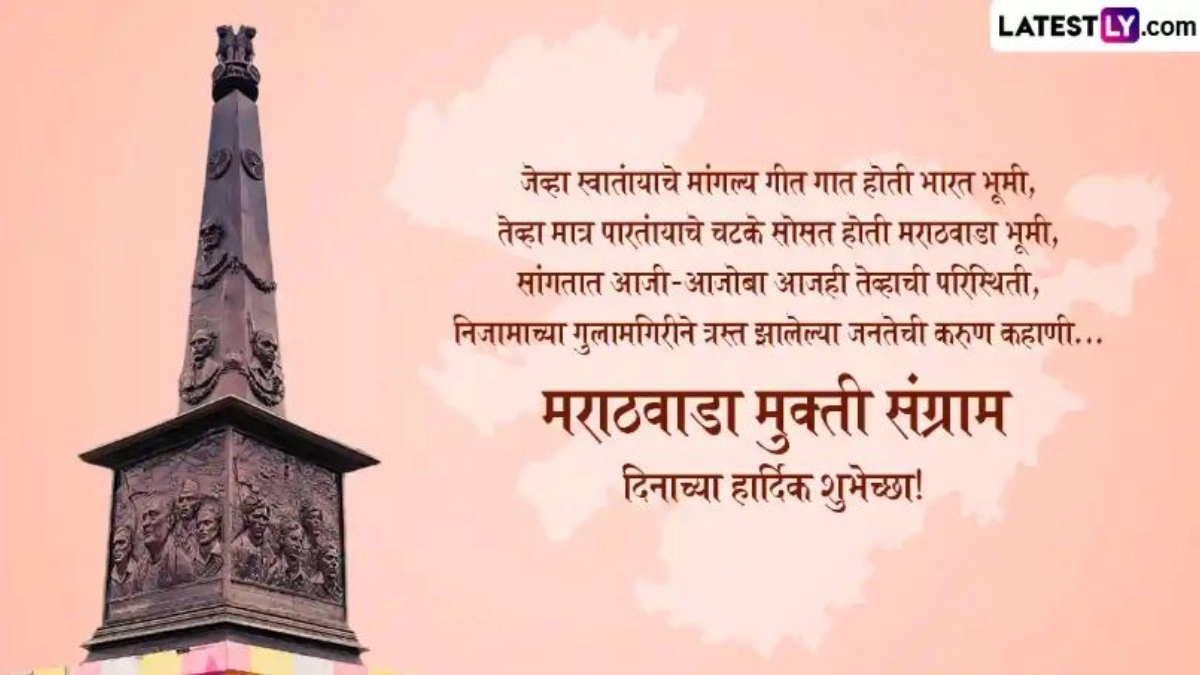 Marathwada Mukti Sangram Din 2025 Messages in Marathi: हर साल 17 सितंबर को मराठवाड़ा मुक्ति दिवस (Marathwada Mukti Sangram Din) के रूप में मनाया जाता है. 15 अगस्त 1947 को भारत स्वतंत्र हुआ था, लेकिन उस समय देश की कई रियासतों का भारत में विलय नहीं हुआ था. उनमें से एक हैदराबाद राज्य था. हैदराबाद के निजाम ने मराठवाड़ा (Marathwada) को 13 महीने तक स्वतंत्रता से वंचित रखा. 15 अगस्त 1947 को भारत और पाकिस्तान के विभाजन के बाद भारत को स्वतंत्रता मिली. हालांकि, हैदराबाद के निजाम मीर उस्मान अली खान हैदराबाद (Hyderabad) को एक अलग राष्ट्र बनाना चाहते थे. हैदराबाद राज्य में महाराष्ट्र (मराठवाड़ा) के 8 जिले, साथ ही आंध्र प्रदेश और कर्नाटक के कुछ हिस्से शामिल थे. निजाम ने लोगों को स्वतंत्रता के प्रवाह से दूर रखने के लिए अत्याचार शुरू कर दिए.