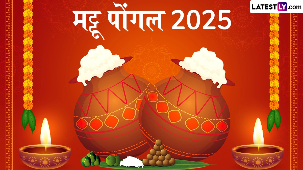 Mattu Pongal 2025 Wishes in Hindi: दक्षिण भारत में मनाए जाने वाले चार दिवसीय पोंगल (Pongal) उत्सव के तीसरे दिन मट्टू पोंगल (Mattu Pongal) मनाया जाता है. इस साल यह त्योहार 16 जनवरी 2025 को मनाया जा रहा है. यह पर्व गाय-बैलों की पूजा-अर्चना को समर्पित है. मट्टू पोंगल के दिन बैलों को स्नान करवाकर उन्हें तैयार किया जाता है. किसान अपने बैलों की सींग पर तेल लगाते हैं और उन्हें सुंदर वस्त्र पहनाकर उनके गले में नई घंटियां बांधते हैं. इस दिन बैलों को सजाने के अलावा पशु धन के तौर पर गाय और उसके बछड़े की भी पूजा-अर्चना की जाती है. बैलों और पशु धन की पूजा करने के बाद उन्हें चावल, गन्ना, हल्दी और अदरक जैसी चीजें खिलाई जाती हैं. इस पर्व को पारंपरिक तरीके से मनाने और इसकी शुभता बढ़ाने के लिए लोग अपने घरों के मुख्य द्वार पर रंगोली भी बनाते हैं. तमिलनाडु (Tamil Nadu), केरल (Kerala) और आंध्र प्रदेश (Andhra Pradesh) जैसे दक्षिण भारतीय राज्यों में इस पोंगल को धूमधाम से मनाया जाता है.