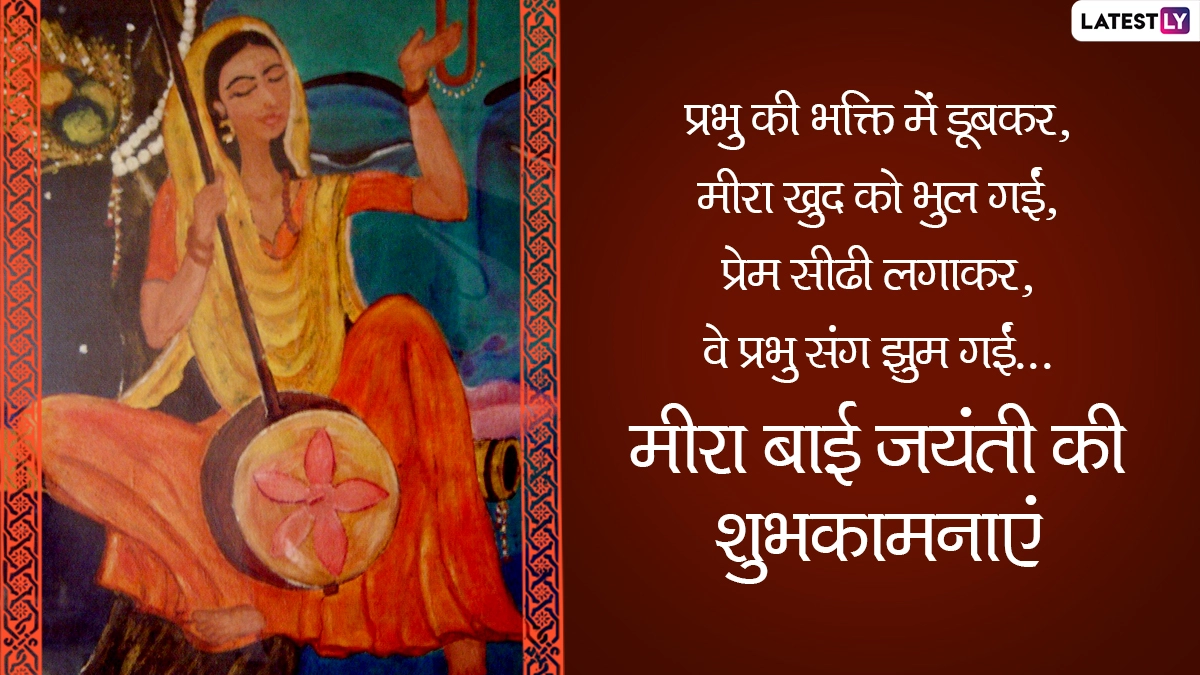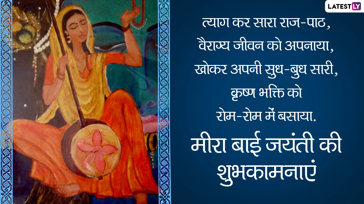 मीराबाई बचपन से ही श्रीकृष्ण की भक्ति में लीन हो गई थीं और बचपन से लेकर युवावस्था और अपनी मृत्यु तक उन्होंने श्रीकृष्ण को ही अपना सर्वस्व माना. कान्हा की भक्ति में अपना पूरा जीवन बिताने वाली मीराबाई की जयंती पर आप इन विशेज, वॉट्सऐप स्टिकर्स, जीआईएफ ग्रीटिंग्स, वॉलपेपर्स और इमेजेस को भेजकर अपनों को बधाई दे सकते हैं.