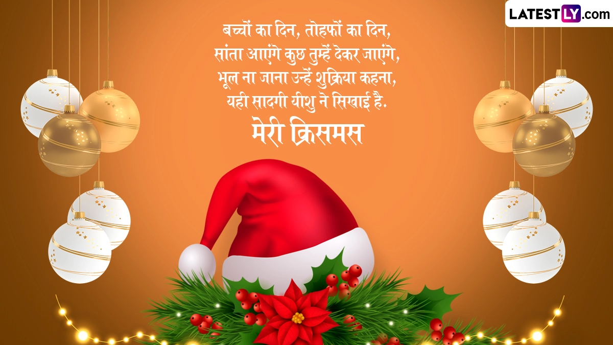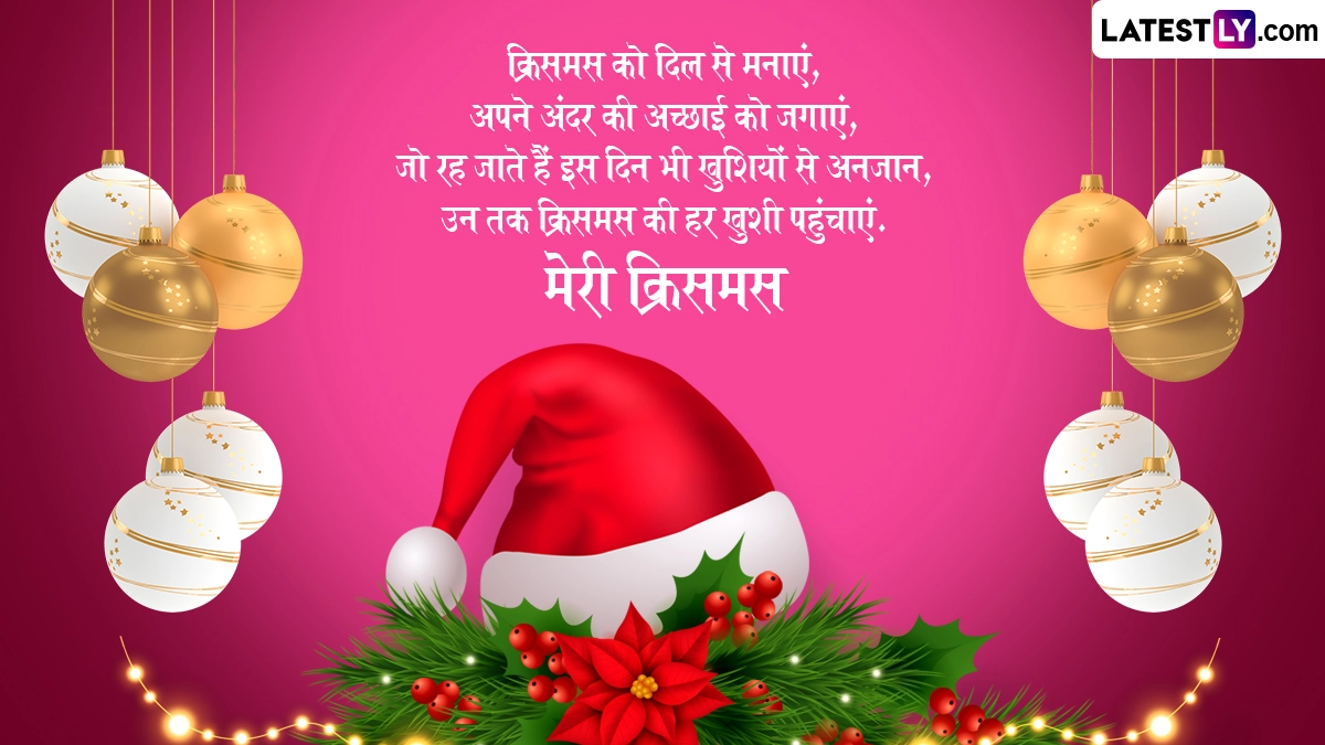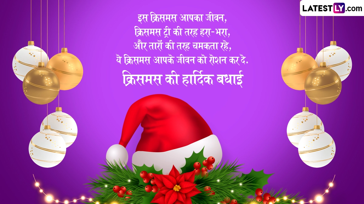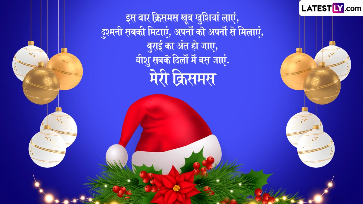 Merry Christmas 2024 Greetings in Hindi: ईसाई धर्म के लोगों के लिए क्रिसमस (Christmas) का त्योहार बेहद ही खास और महत्वपूर्ण होता है, जिसका उन्हें पूरे साल बेसब्री से इंतजार रहता है. खासतौर पर 25 दिसंबर को मनाए जाने वाले इस पर्व का बच्चों को बड़ी ही बेसब्री से इंतजार रहता है, क्योंकि इस दिन सैंटा क्लॉज (Santa Claus) बच्चों को गिफ्ट्स देते हैं. ईसाई धर्म की मान्यताओं के अनुसार, 25 दिसंबर को प्रभु यीशु यानी ईसा मसीह (Yeshu Masih) का जन्म हुआ था, लेकिन बाइबल में उनके जन्म की सटीक तारीख का उल्लेख नहीं किया गया है. हालांकि चौथी शताब्दी में रोम के सम्राट कॉन्सटेंटाइन ने 25 दिसंबर को ही क्रिसमस के रूप में आधिकारिक मान्यता दी, जिसके बाद से ईसाई धर्म के लोग 25 दिसंबर को ईसा मसीह के जन्मदिन के तौर पर क्रिसमस डे (Christmas Day) मनाने लगे.