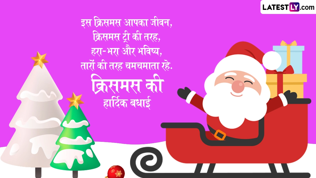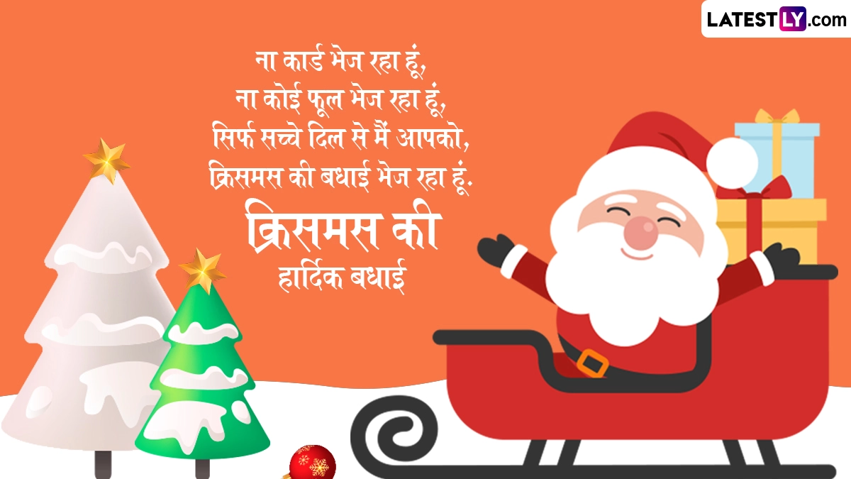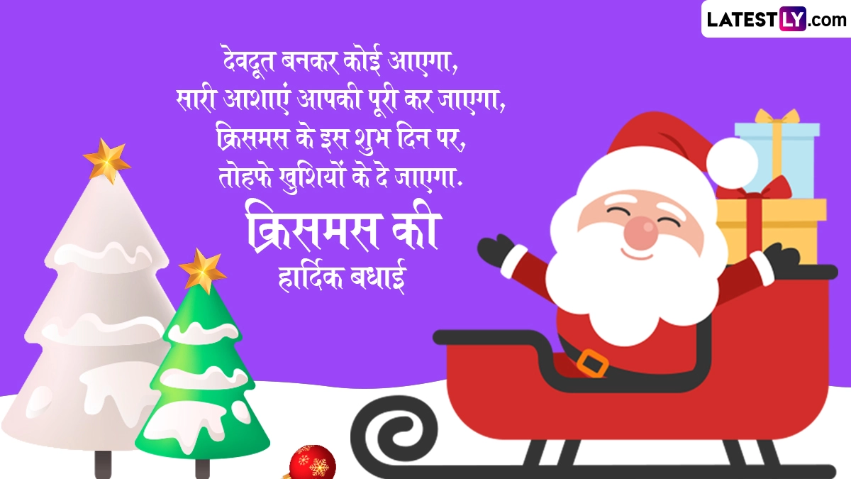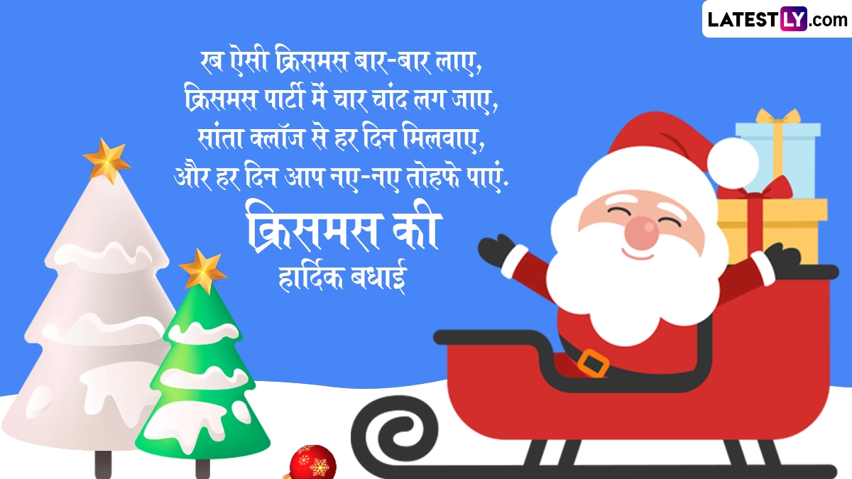 क्रिसमस के पर्व को धूमधाम से मनाने के लिए दुनिया भर के लोग अपने घरों में क्रिसमस ट्री लेकर आते हैं और उसे रंग-बिरंगी लाइटों, कैंडल्स व गिफ्ट से सजाते हैं. इसके साथ ही लोग सैंटा क्लॉज बनकर बच्चों को तोहफे देते हैं और शानदार दावतों का आयोजन किया जाता है. ऐसे में इस अवसर पर आप इन शानदार हिंदी विशेज, कोट्स, वॉट्सऐप मैसेजेस, फेसबुक ग्रीटिंग्स को शेयर कर प्रियजनों को क्रिसमस की हार्दिक बधाई दे सकते हैं.