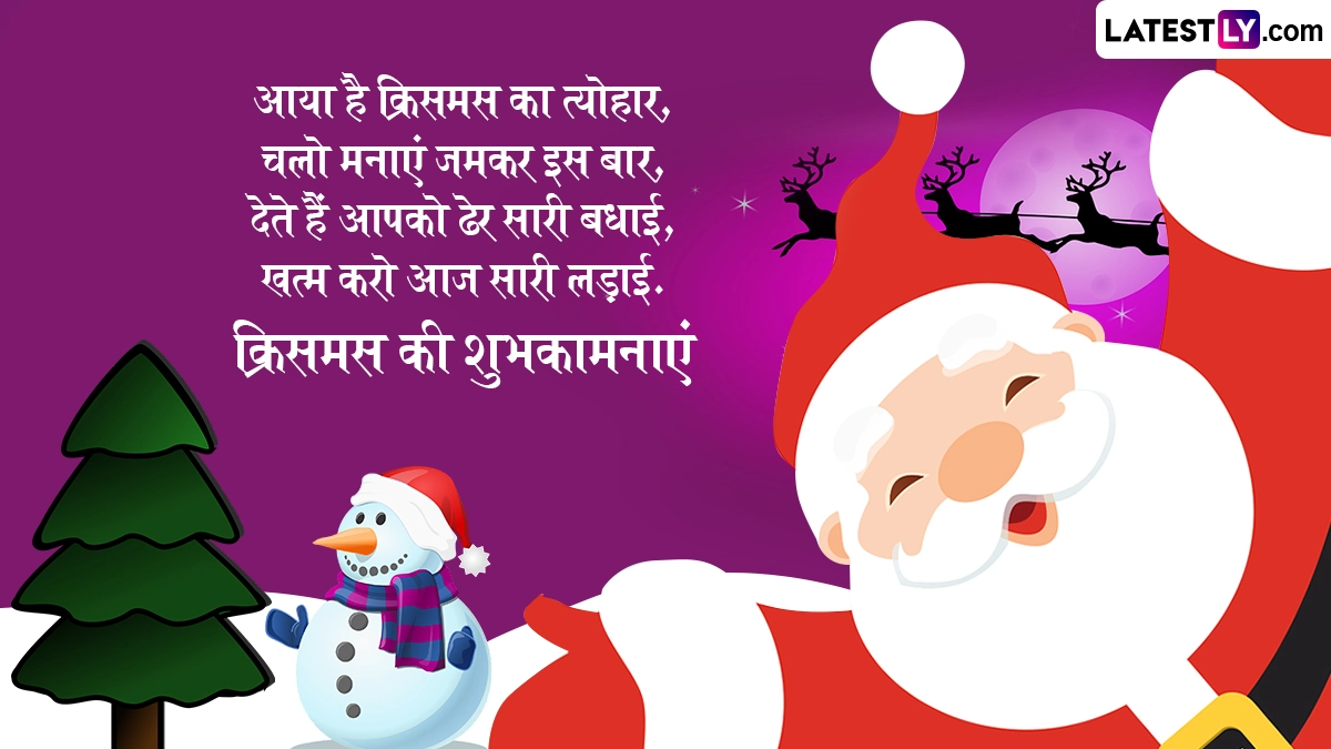 Merry Christmas 2025 Wishes in Hindi: क्रिसमस (Christmas) एक ऐसा पर्व है, जिसके सेलिब्रेशन को यादगार बनाने के लिए लोग काफी पहले से तैयारियां करते हैं. दरअसल, पांच दिवसीय दिवाली उत्सव (Diwali Festival) मनाने के बाद से ही हर कोई क्रिसमस की खास तैयारियों जुट जाता है. 25 दिसंबर को इस जश्न को मनाने के लिए घरों के अलावा दफ्तरों और सार्वजनिक स्थलों पर क्रिसमस ट्री सजाए जाते हैं. वहीं क्रिसमस ईव की रात बच्चों को सैंटा क्लॉज का इंतजार रहता है और उपहार की चाह में बच्चे बिस्तर के पास मोजे रखकर सोते हैं. कई लोग इस दिन सीक्रेट सैंटा बनकर गिफ्ट्स, चॉकलेट और केक देकर बच्चों के लिए भी इस दिन को स्पेशल बना देते हैं. इस दिन शानदार दावतों का आयोजन किया जाता है, जिसमें परिवार के अलावा रिश्तेदारों और करीबियों को इनवाइट किया जाता है. साल के इस आखिरी पर्व को लगभग सभी धर्मों के लोग दुनिया भर में पूरे जोश और उत्साह के साथ सेलिब्रेट करते हैं.
