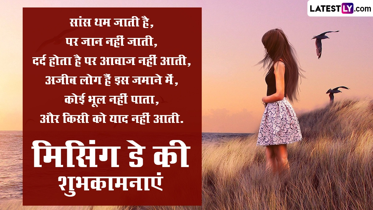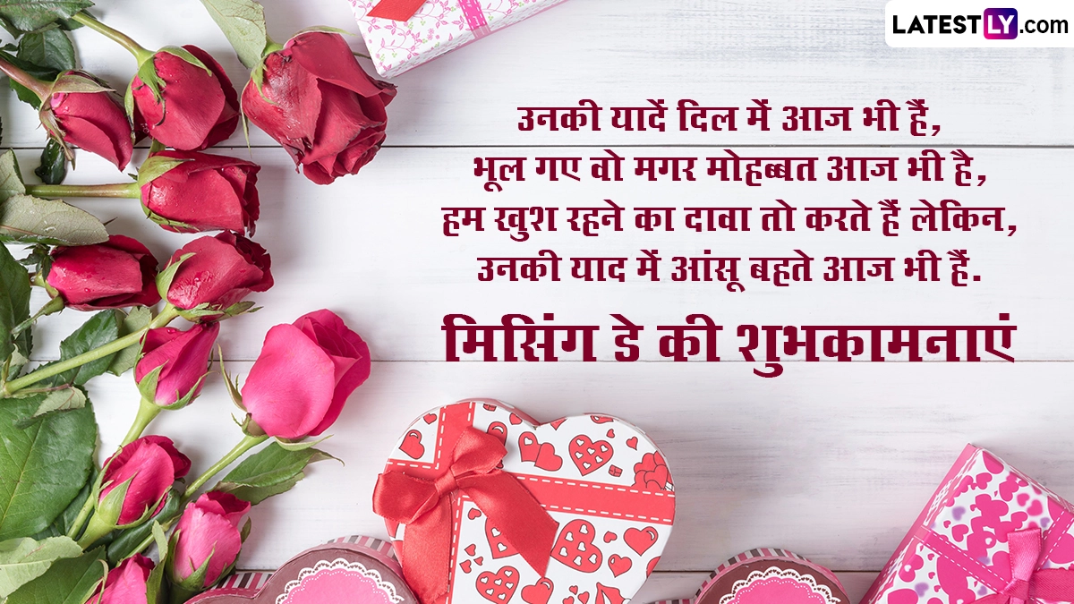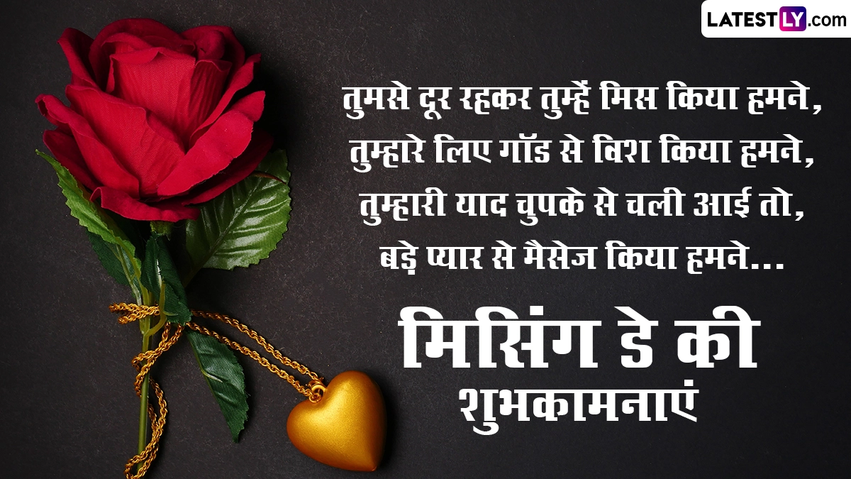Missing Day 2024 Wishes in Hindi: प्यार के महापर्व वैलेंटाइन डे (Valentine Day) को मनाने के बाद कपल्स, सिंगल और प्यार में धोखा खाए लोग एंटी-वैलेंटाइन वीक (Anti-Valentine's Week) सेलिब्रेट कर रहे हैं. एंटी-वैलेंटाइन वीक के छठे दिन यानी 20 फरवरी को मिसिंग डे (Missing Day) मनाया जाता है. जिन लोगों के साथी या पार्टनर उनसे दूर हैं, वो मिसिंग डे पर खुलकर अपनी भावनाओं का इजहार करते हुए बताते हैं कि वो उन्हें कितना मिस कर रहे हैं. इसके साथ ही मिसिंग डे अपने किसी प्रिय को मनाने या उससे अपनी भावनाओं को जाहिर करने का एक अच्छा मौका प्रदान करता है. यह उन लोगों के लिए भी खास दिन है, जिनका अपने पार्टनर के साथ ब्रेकअप हो गया या फिर किसी वजह से रिश्ते में दूरियां आ गई हैं. ऐसे लोग इस दिन अपने रिश्ते को सुधारने के लिए अपने साथी को मनाने का प्रयास कर सकते हैं.
