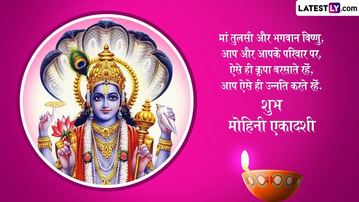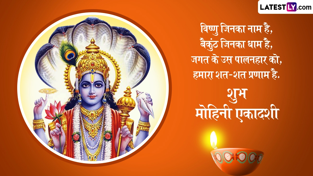 Mohini Ekadashi 2025 Wishes in Hindi: एकादशी तिथि भगवान विष्णु (Bhagwan Vishnu) को अत्यंत प्रिय है, इसलिए भक्त हर महीने शुक्ल और कृष्ण पक्ष की एकादशी तिथि को व्रत रखकर श्रीहरि की उपासना करते हैं. साल भर में कुल 24 एकादशी व्रत रखे जाते हैं, जबकि हिंदू पंचांग के अनुसार, वैशाख मास के शुक्ल पक्ष की एकादशी को मोहिनी एकादशी (Mohini Ekadashi) के नाम से जाना जाता है, जिसका खास महत्व बताया जाता है. मान्यता है कि जो भी व्यक्ति इस दिन श्रद्धापूर्वक विधि-विधान से पूजा-अर्चना करता है, उसे भगवान विष्णु और माता लक्ष्मी की कृपा प्राप्त होती है, साथ ही जीवन में सुख-शांति और समृद्धि का आगमन होता है. उदयातिथि के अनुसार, इस साल 8 मई 2025 को मोहिनी एकादशी मनाई जा रही है.