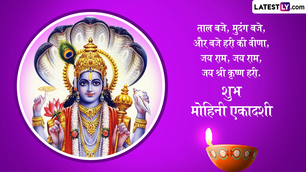 मोहिनी एकादशी के दिन भगवान विष्णु के मोहिनी अवतार की पूजा की जाती है. इस व्रत को करने से शत्रुओं से छुटकारा मिलता है, सभी दुखों और पापों से मुक्ति मिलती है. कहा जाता है कि त्रेतायुग में महर्षि वशिष्ठ के कहने पर भगवान राम ने मोहिनी एकादशी का व्रत किया था. ऐसे में इस अवसर पर आप इन हिंदी विशेज, कोट्स, वॉट्सऐप मैसेजेस, जीआईएफ ग्रीटिंग्स के जरिए प्रियजनों को मोहिनी एकादशी की बधाई दे सकते हैं.