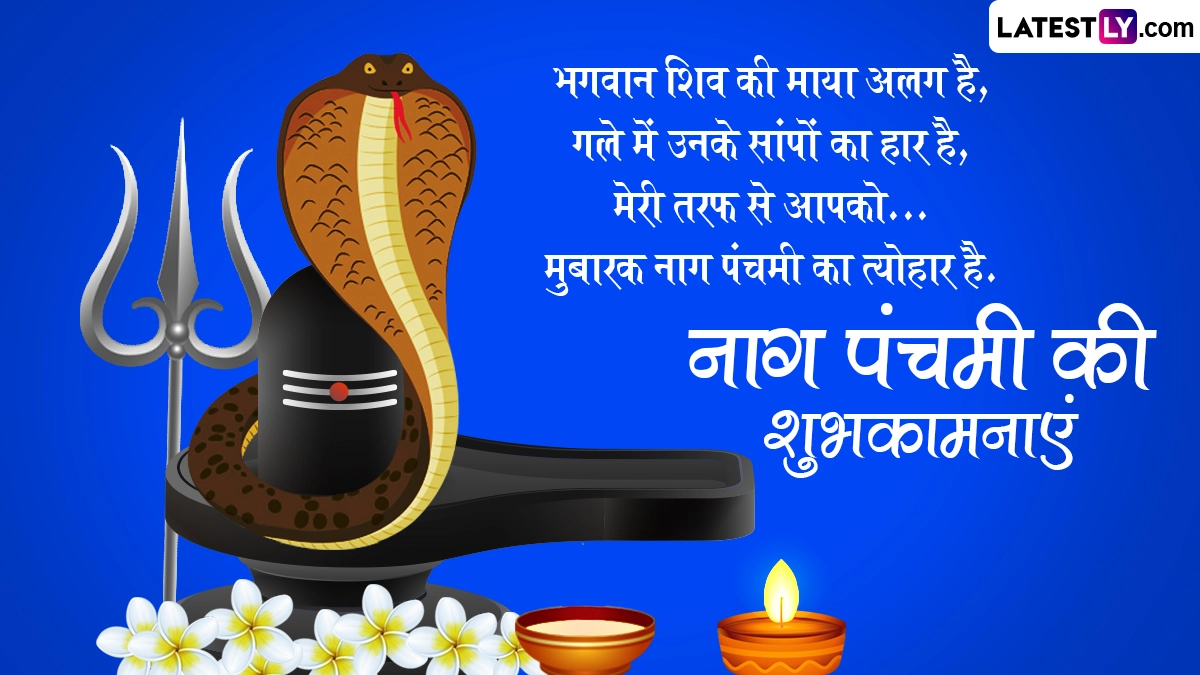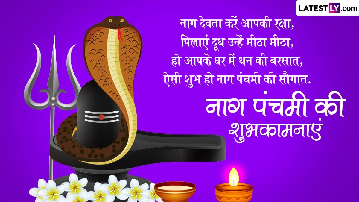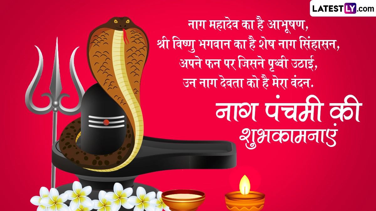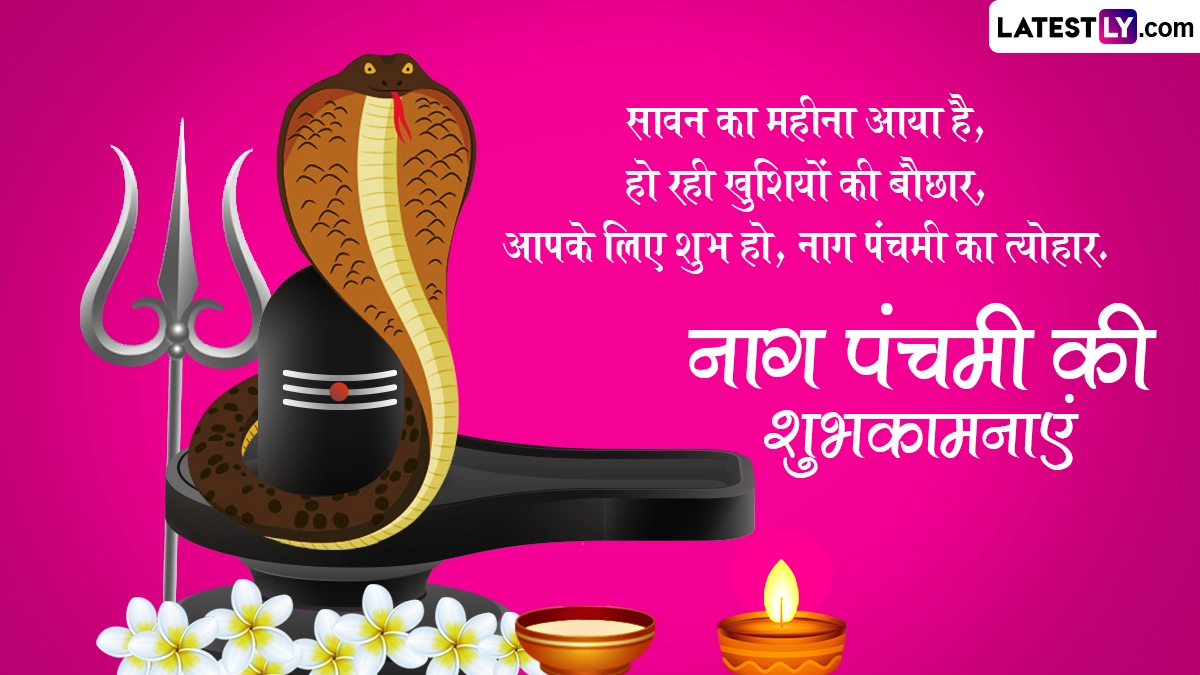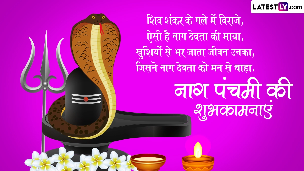 नाग पंचमी का दिन नाग देवता को समर्पित है, इसलिए इसे नागों का पर्व भी कहा जाता है. इस दिन लोग नाग देवता की पूजा करते हुए उन्हें दूध अर्पित करते हैं. इसके साथ ही इस दिन लोग शुभकामना संदेशों का आदान-प्रदान भी करते हैं. ऐसे में इस शुभ अवसर पर आप भी इन भक्तिमय हिंदी विशेज, वॉट्सऐप मैसेजेस, जीआईएफ ग्रीटिंग्स और कोट्स को शेयर करके अपने प्रियजनों को नाग पंचमी की शुभकामनाएं दे सकते हैं.