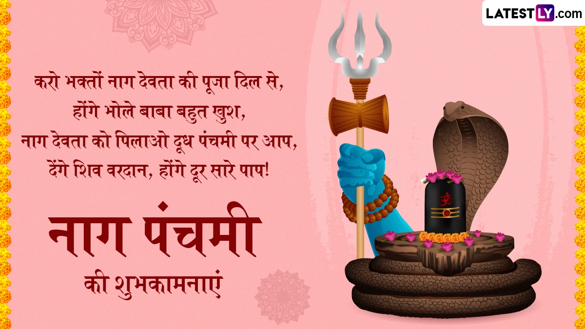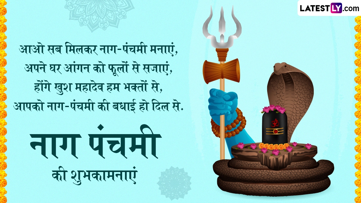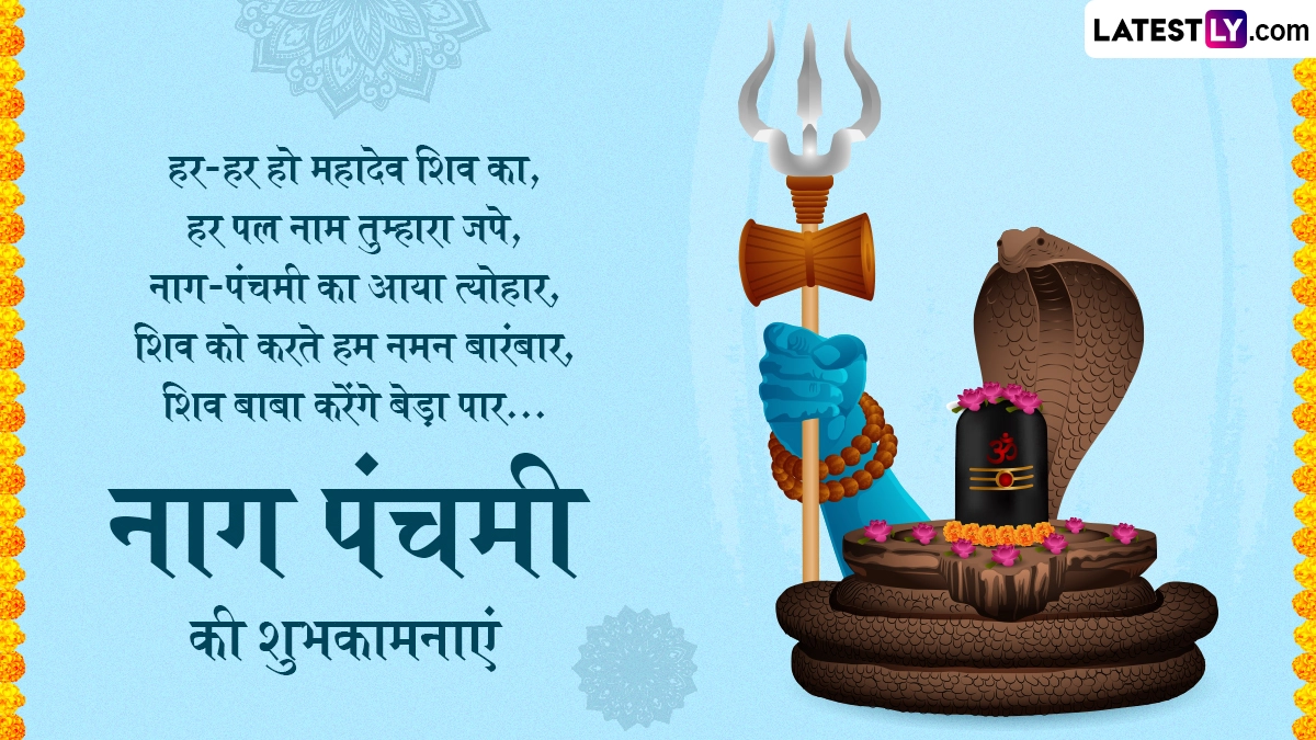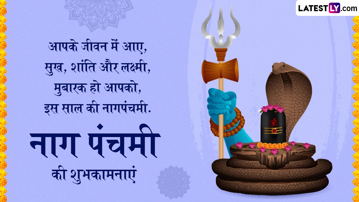 ऐसा माना जाता है कि नाग पंचमी के दिन नाग देवता की पूजा करने से कुंडली में मौजूद कालसर्प दोष के नकारात्मक प्रभाव कम होते हैं. इसके साथ ही घर में सुख-शांति और समृद्धि आती है. यह पर्व नागों के प्रति सम्मान और उनकी सुरक्षा का प्रतीक है. इस अति पावन अवसर पर आप इन शानदार विशेज, कोट्स, वॉट्सऐप मैसेजेस, फेसबुक ग्रीटिंग्स को भेजकर अपनों को नाग पंचमी की शुभकामनाएं दे सकते हैं.