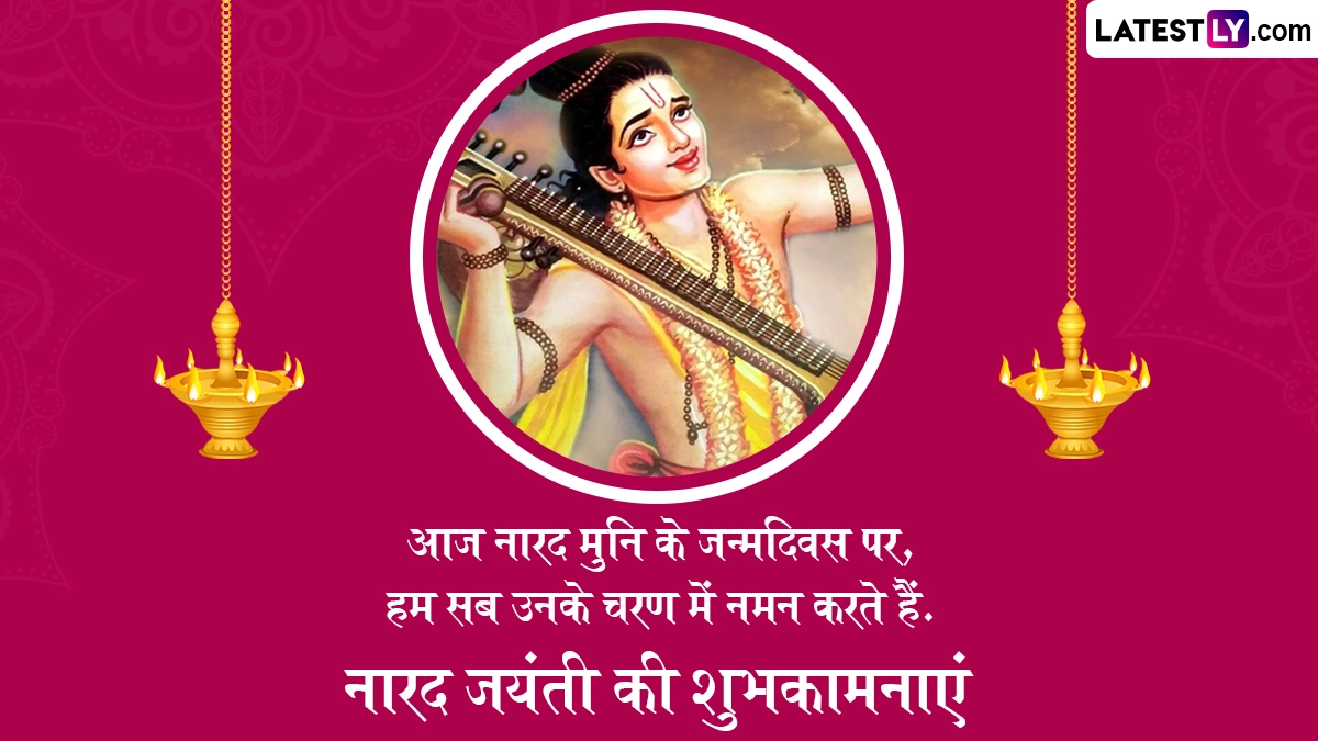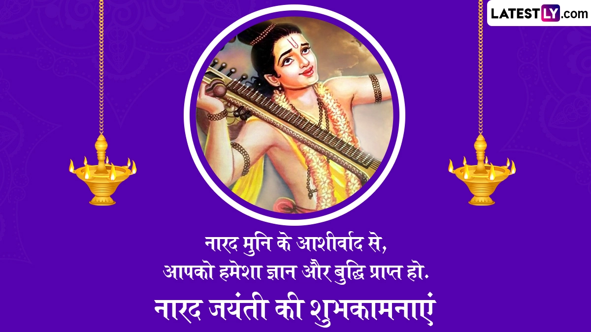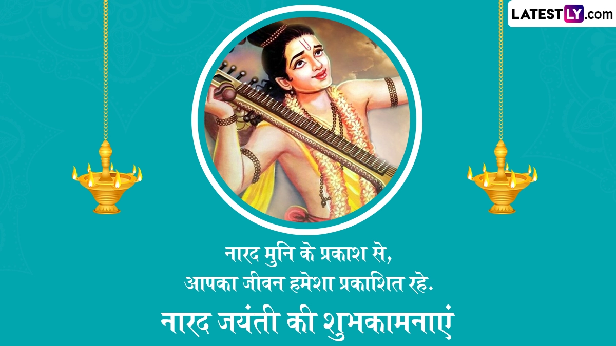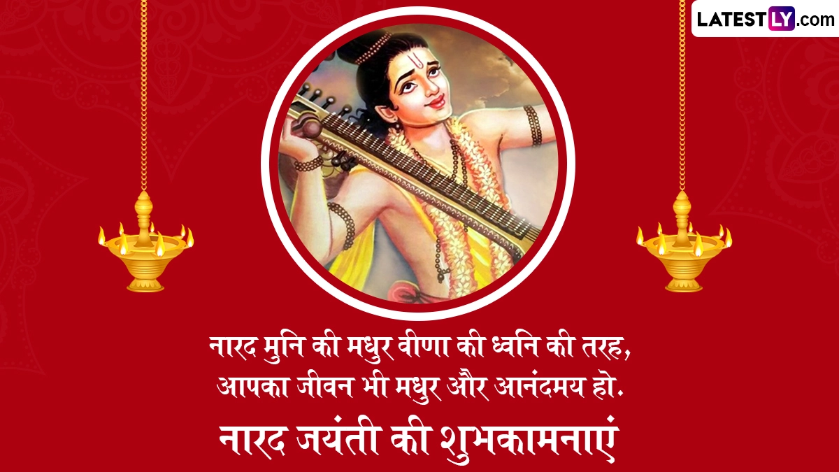 Narada Jayanti 2025 Wishes in Hindi: हिंदू पंचांग के अनुसार, हर साल ज्येष्ठ मास के कृष्ण पक्ष की प्रतिपदा तिथि को इस सृष्टि के पहले पत्रकार और भगवान विष्णु (Bhagwan Vishnu) के परम भक्त महर्षि नारद जी की जयंती (Narada Jayanti) हर्षोल्लास के साथ मनाई जाती है, जबकि ग्रेगोरियन कैलेंडर के अनुसार इस साल 13 मई 2025 को नारद जयंती मनाई जा रही है. ऐसी मान्यता है कि इसी दिन नारद मुनि का जन्म हुआ था. महर्षि नारद तीनों लोकों में सूचना पहुंचाने का काम करते थे, इसलिए उन्हें इस संसार का प्रथम पत्रकार भी माना जाता है. नारद मुनि पृथ्वी, आकाश और पाताल लोक में देवी-देवताओं और असुरों तक संदेश पहुंचाया करते थे. देवर्षि नारद को श्रुति-स्मृति, इतिहास, पुराण, व्याकरण, वेदांग, संगीत, खगोल-भूगोल, ज्योतिष और योग जैसे कई शास्त्रों का प्रकांड विद्वान माना जाता है.
