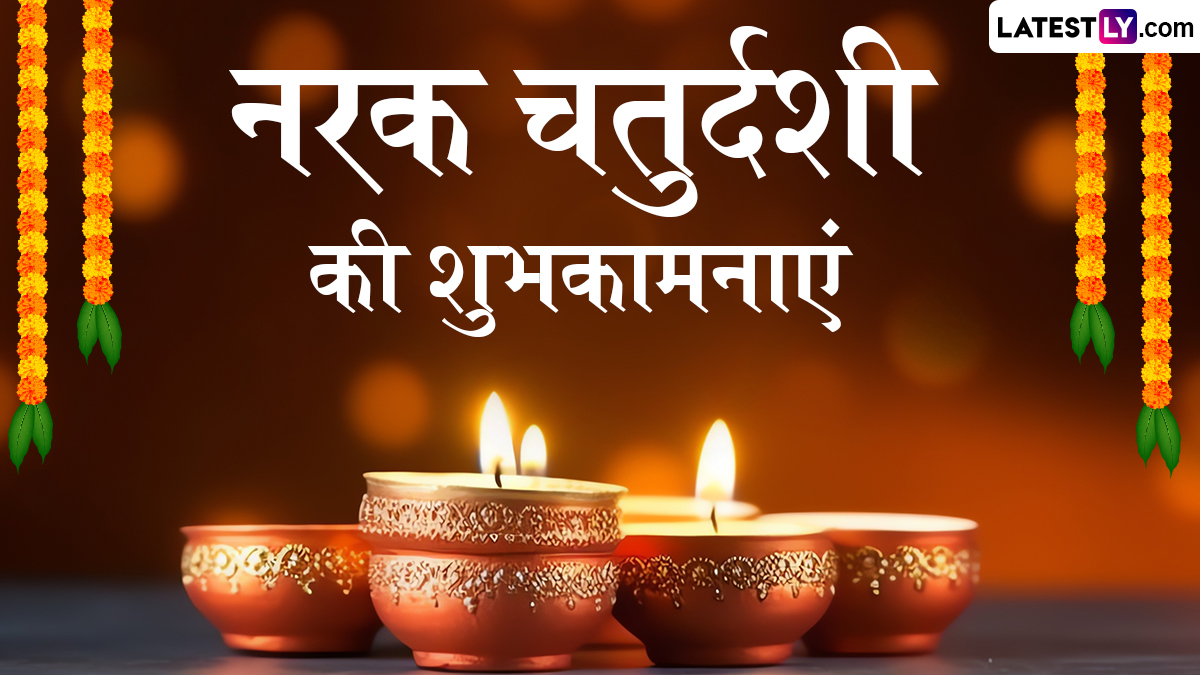 Narak Chaturdashi 2025 Messages: दिवाली का त्यौहार पांच दिन तक मनाया जाता है, यह त्यौहार धनतेरस से शुरू होता है और भाई दूज से समाप्त होता है. धनतेरस के बाद नरक चतुर्दशी मनाई जाती है. नरक चतुर्दशी (Narak Chaturdashi) को छोटी दिवाली (Choti Diwali) या रूप चौदस (Roop Chaudas) के नाम से भी जाना जाता है, इस साल नरक चतुर्दशी 19 अक्टूबर 2025 को मनाई जाएगी. अभ्यंग स्नान मुहूर्त सुबह 04:23 बजे शुरू होगा और 05:35 बजे समाप्त होगा, जो 1 घंटे 12 मिनट तक चलेगा. नरक चतुर्दशी के दिन घर से सारे पुराने टूटे- फूटे सामान और कचरा घर से बाहर निकाला जाता है. ऐसा कहा जाता है बिना काम के पुराना सामान और कबाड़ा घर से बाहर निकालने से घर में अच्छी एनर्जी आती है. लक्ष्मी पूजा से एक दिन पहले नरक चतुर्दशी मनाई जाती है. पांच दिवसीय दिवाली उत्सव में नरक चतुर्दशी का बहुत महत्व है. हिंदू मान्यताओं के अनुसार, चतुर्दशी तिथि के दौरान अभ्यंग स्नान करने से नरक के कष्टों से मुक्ति मिलती है. भक्त स्नान से पहले तिल का तेल लगाते हैं, क्योंकि यह शुद्धिकरण और नकारात्मक ऊर्जाओं से सुरक्षा का प्रतीक है. यह भी पढ़ें: Dhanteras 2025: सोना महंगा है तो धनतेरस पर ये वस्तुएं खरीदकर भी घर में शुभता और सौभाग्य ला सकते हैं! जानें क्या वस्तुएं खरीदें!
