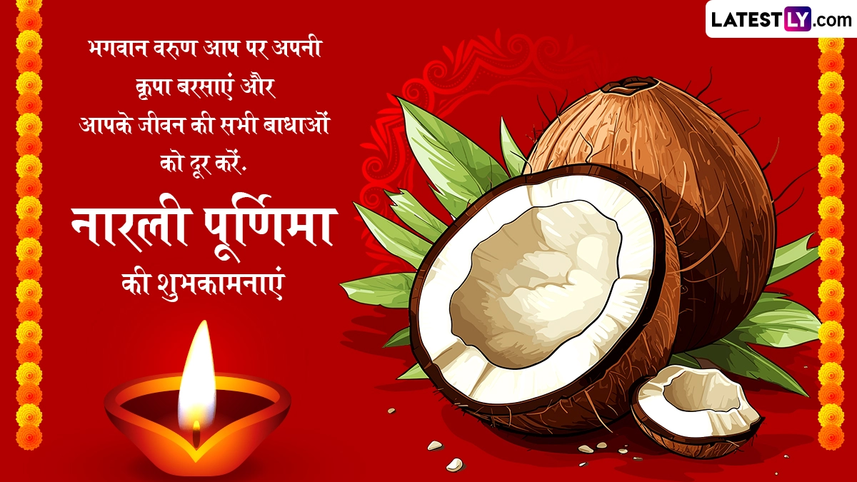 नराली पूर्णिमा को लेकर मान्यता है कि इस दिन सागर के देवता वरुण देव की पूजा करने और समंदर में नारियल अर्पित करने से मछुआरों के कार्यों बरकत बनी रहती है. इसके साथ ही वरुण देव प्रसन्न होते हैं और दुर्भाग्यपूर्ण घटनाओं से मछुआरों की रक्षा करते हैं. ऐसे में नारली पूर्णिमा के इस पावन अवसर पर आप इन हिंदी मैसेजेस, वॉट्सऐप विशेज, कोट्स, फेसबुक ग्रीटिंग्स को प्रियजनों संग शेयर करके उन्हें शुभकामनाएं दे सकते हैं.