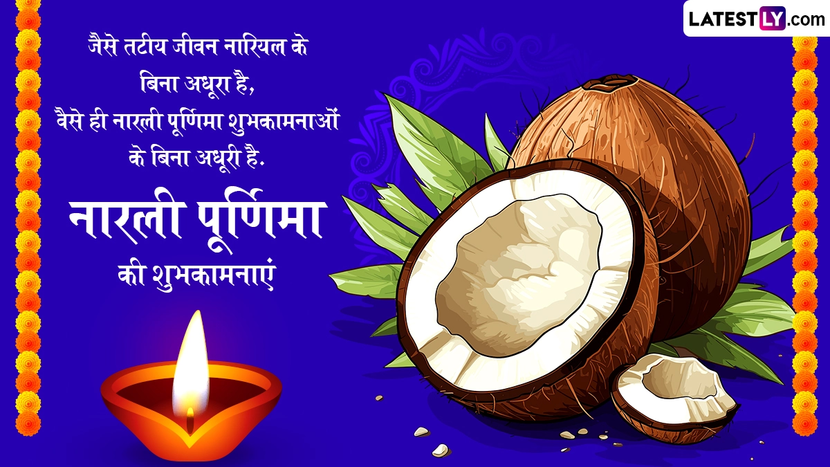 Narali Purnima 2025 Messages in Hindi: एक तरफ जहां सावन मास की पूर्णिमा (Sawan Purnima) तिथि को देशभर में रक्षा बंधन का त्योहार मनाया जाता है तो वहीं दूसरी तरफ भारत के तटीय क्षेत्रों, खासकर महाराष्ट्र, कोंकण, गोवा और गुजरात में रहने वाले मछुआरे इस दिन नारली पूर्णिमा (Narali Purnima) का त्योहार मनाते हैं, जिसे नारियली पूर्णिमा (Nariyali Purnima), श्रावण पूर्णिमा (Shravan Purnima) और कौमुदी पूर्णिमा (Kaumudi Purnima) के नाम से भी जाना जाता है. इस साल 9 अगस्त 2025 को यह पर्व मनाया जा रहा है. दरअसल, नारली पूर्णिमा मछली पकड़ने के मौसम की शुरुआत का प्रतीक है, इसलिए इस दिन समंदर में नारियल अर्पित करके मछुआरे भगवान वरुण देव की पूजा करते हैं. पूजा करने के बाद मछुआरे अपनी सजी हुई नावों का प्रदर्शन करते हुए समंदर में जाते हैं और छोटी सी यात्रा करके किनारे पर वापस लौट आते हैं. इसके अलावा इस उत्सव को मनाने के लिए घरों में नारियल से मीठे पकवान बनाए जाते हैं, जिसे परिवार वालों और करीबियों के साथ मिलकर खाया जाता है.
