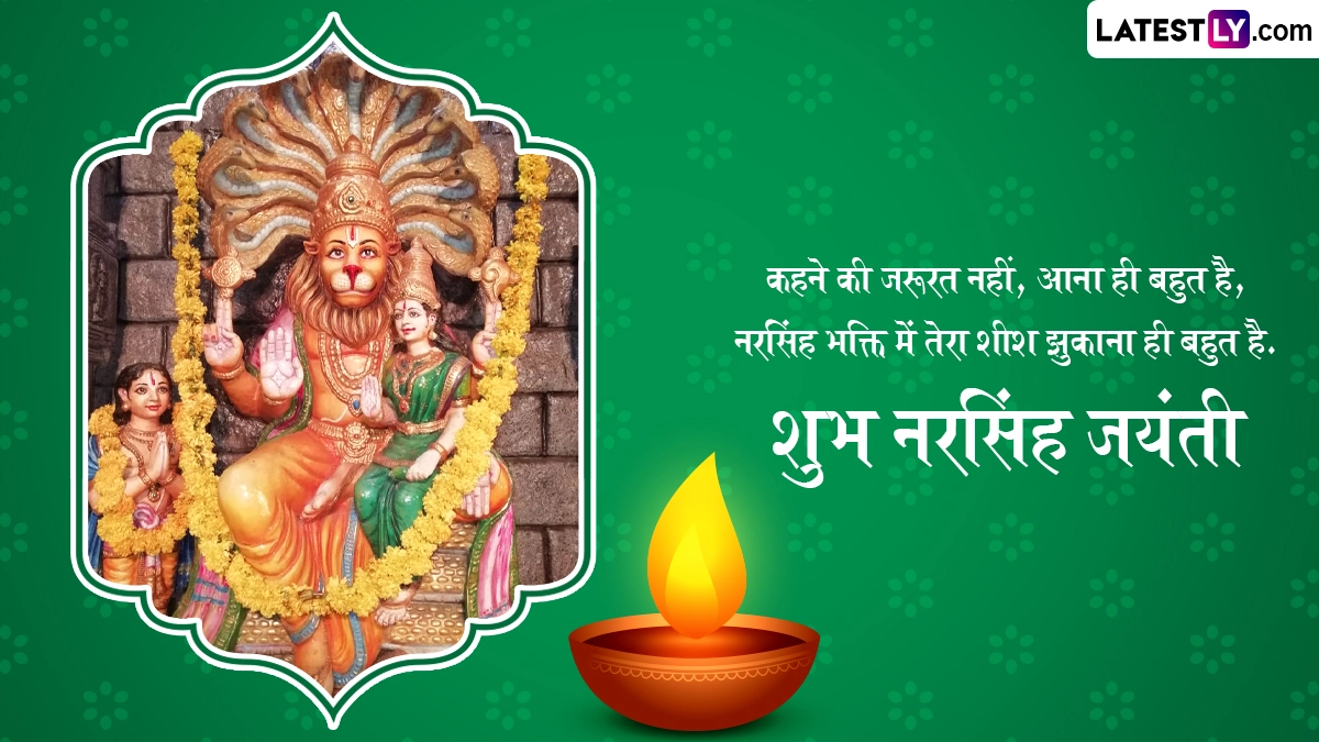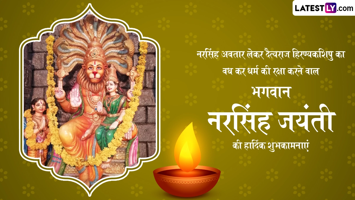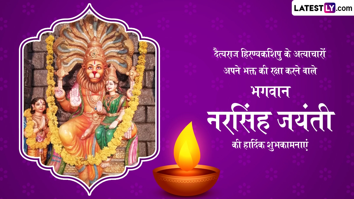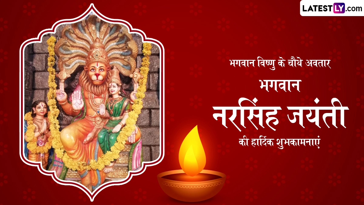 Narasimha Jayanti 2024 Wishes in Hindi: हिंदू पंचांग के अनुसार हर साल वैशाख मास के शुक्ल पक्ष की चतुर्दशी को नरसिंह जयंती (Narsingh Jayanti) का त्योहार मनाया जाता है, जिसे नरसिम्हा जयंती (Narasimha Jayanti) या नृसिंह जयंती भी कहा जाता है. इस साल 21 मई 2024, मंगलवार को नरसिंह जयंती मनाई जा रही है. ऐसी मान्यता है कि नृसिंह, भगवान विष्णु (Bhagwan Vishnu) के चौथे अवतार हैं, जिनका आधा शरीर मानव और आधा शरीर सिंह का है, इसलिए उन्हें नृसिंह कहा जाता है. मान्यता है कि इस दिन भगवान नरसिम्हा की विधि-विधान से पूजा करने पर भक्तों के सारे संकट दूर होते हैं और उनकी मनोकामनाएं पूरी होती हैं. कहा जाता है कि भगवान विष्णु ने नरसिंह अवतार लेकर न सिर्फ अपने भक्त प्रह्लाद की रक्षा की थी, बल्कि उन्होंने हिरण्यकश्यप का वध करके बुराई का नाश भी किया था, इसलिए इसे बुराई पर अच्छाई की जीत का पर्व भी माना जाता है.