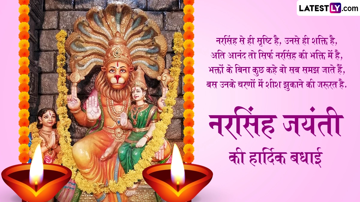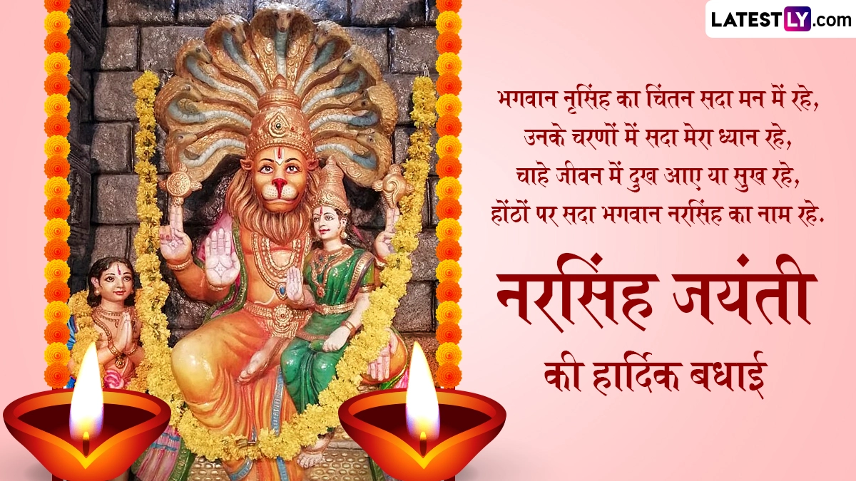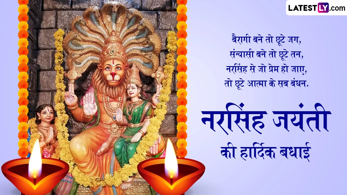 नरसिंह जयंती के दिन भगवान नृसिंह की विधि-विधान से पूजा करने पर भक्तों के सारे संकट दूर होते हैं और उनकी समस्त मनोकामनाएं पूरी होती हैं. इस पर्व को मनाने की परंपरा सदियों से चली आ रही है और इस दिन शुभकामना संदेशों का आदान-प्रदान भी किया जाता है. ऐसे में इस खास अवसर पर आप भी इन हिंदी मैसेजेस, वॉट्सऐप विशेज, कोट्स, जीआईएफ ग्रीटिंग्स को प्रियजनों संग शेयर करके उन्हें नरसिंह जयंती की हार्दिक बधाई दे सकते हैं.