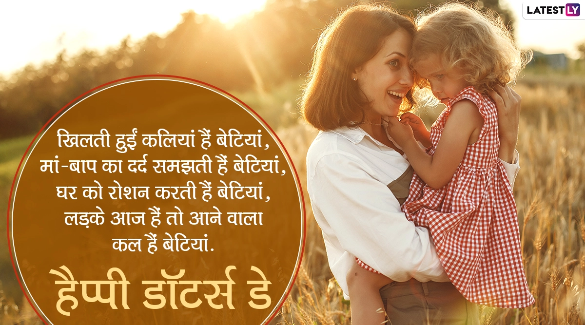 National Daughter's Day 2024 Wishes in Hindi: दुनिया भर के माता-पिता और उनकी बेटियों के बीच अनोखे व अटूट रिश्ते का सम्मान करने के लिए हर साल सितंबर महीने के चौथे रविवार को राष्ट्रीय बेटी दिवस यानी नेशनल डॉटर्स डे (National Daughter's Day) सेलिब्रेट किया जाता है. इस साल राष्ट्रीय बेटी दिवस 22 सितंबर 2024 को मनाया जा रहा है. भारत में यह दिन इसलिए भी खास है, क्योंकि यह परिवार और समाज में बेटियों (Daughter's) के प्रति प्यार, सम्मान और उनके महत्व को दर्शाता है. इस दिवस को पहली बार साल 2007 में मनाया गया था, तब से लेकर हर साल इसे बेटियों के सम्मान में मनाया जाता है. राष्ट्रीय बेटी दिवस बेटियों के प्रति प्यार, कृतज्ञता और प्रशंसा व्यक्त करने के लिए मनाया जाता है.