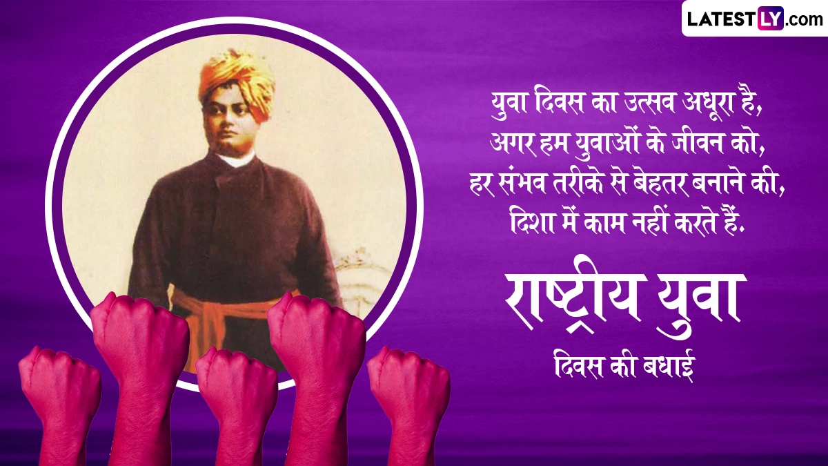 स्वामी विवेकानंद का जन्म 12 जनवरी 1863 को बंगाल के कोलकाता में हुआ था. उनका असली नाम नरेंद्रनाथ दत्त था. उनके जन्मदिन पर मनाया जाने वाला राष्ट्रीय युवा दिवस देश के तमाम युवाओं को समर्पित है, जो भारत के उज्जवल भविष्य के निर्माण में अहम भूमिका निभा सकते हैं. इस खास अवसर पर आप इन हिंदी विशेज, कोट्स, वॉट्सऐप मैसेजेस, फेसबुक ग्रीटिंग्स के जरिए प्रियजनों को राष्ट्रीय युवा दिवस की बधाई दे सकते हैं.