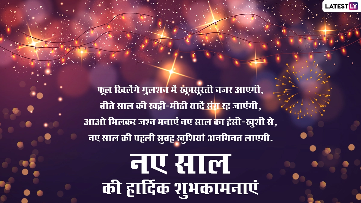 New Year 2025 WhatsApp Status in Hindi and Nav Varsh 2025 Images: नया साल या "नव वर्ष" एक नई शुरुआत का प्रतीक है, जो अतीत पर चिंतन करने और भविष्य के लिए इरादे तय करने का मौका देता है. यह आशा, प्रगति और आगे आने वाली अनंत संभावनाओं का एक सार्वभौमिक उत्सव है. दुनिया भर के लोग इस दिन को खुशियों भरी परंपराओं के साथ मनाते हैं, आधी रात की आतिशबाजी से लेकर दिल से किए गए संकल्पों तक, जो सकारात्मक बदलावों और नए अवसरों का स्वागत करने की सामूहिक इच्छा का प्रतीक है. उत्सवों से परे, नया साल रुकने और उन संबंधों को संजोने का एक पल होता है, जो सबसे ज़्यादा मायने रखते हैं. जल्द ही हम नए साल 2025 में प्रवेश करने वाले हैं, हम आपके लिए हिंदी में हैप्पी न्यू ईयर विशेज लेकर आए हैं. यह भी पढ़ें: World New Year Celebration Time: कौन सा देश नए साल का जश्न सबसे पहले और आखिर में मनाएगा, जानें दुनियाभर में 1 जनवरी शुरू होने का वक्त