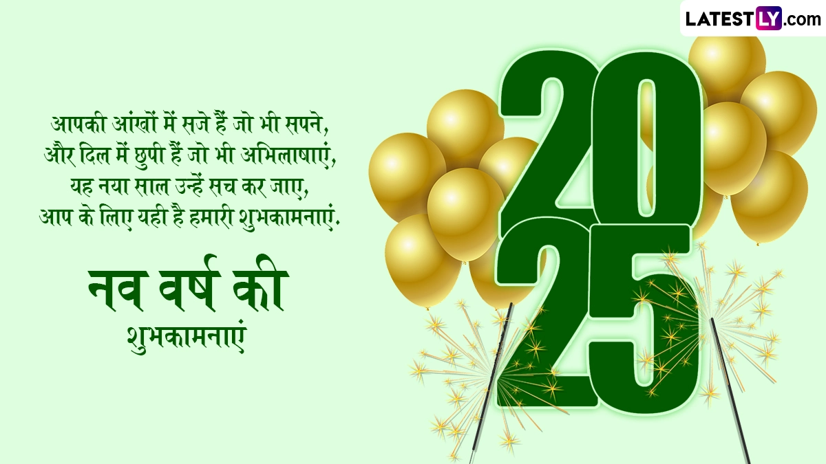 New Year 2025 Wishes in Hindi: हर कोई नए साल (New Year) यानी 2025 का गर्मजोशी से स्वागत करने के लिए उत्साहित है. दरअसल, पुराने साल से मिली खट्टी-मीठी यादों और ढेर सारे अनुभवों के साथ दुनिया भर के लोग साल 2024 को विदा करते हुए नए साल यानी 2025 का जोश और उत्साह के साथ स्वागत करने के लिए बेकरार हैं. हर साल 31 दिसंबर यानी न्यू ईयर ईव (New Year Eve) की रात लोग नाचते-गाते और जश्न मनाते हुए पुराने साल को अलविदा कहते हैं और जैसे ही रात के 12 बजते हैं, लोग ढेर सारी उम्मीदों, ख्वाहिशों और सपनों के साथ नए साल का दिल खोलकर स्वागत करते हैं. हर किसी को उम्मीद होती है कि आनेवाला नया साल उनके जीवन में नई खुशियां, नए सपने और ढेर सारे उत्साह को लेकर आएगा, इसलिए लोग धूमधाम से नए साल का वेलकम करते हैं.