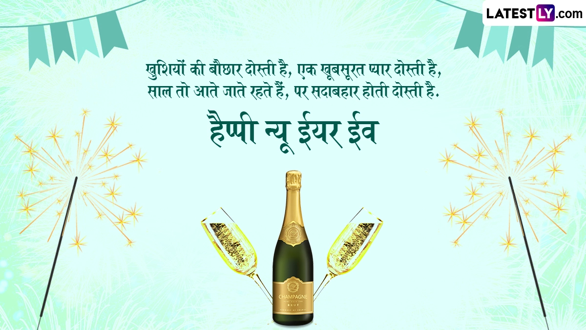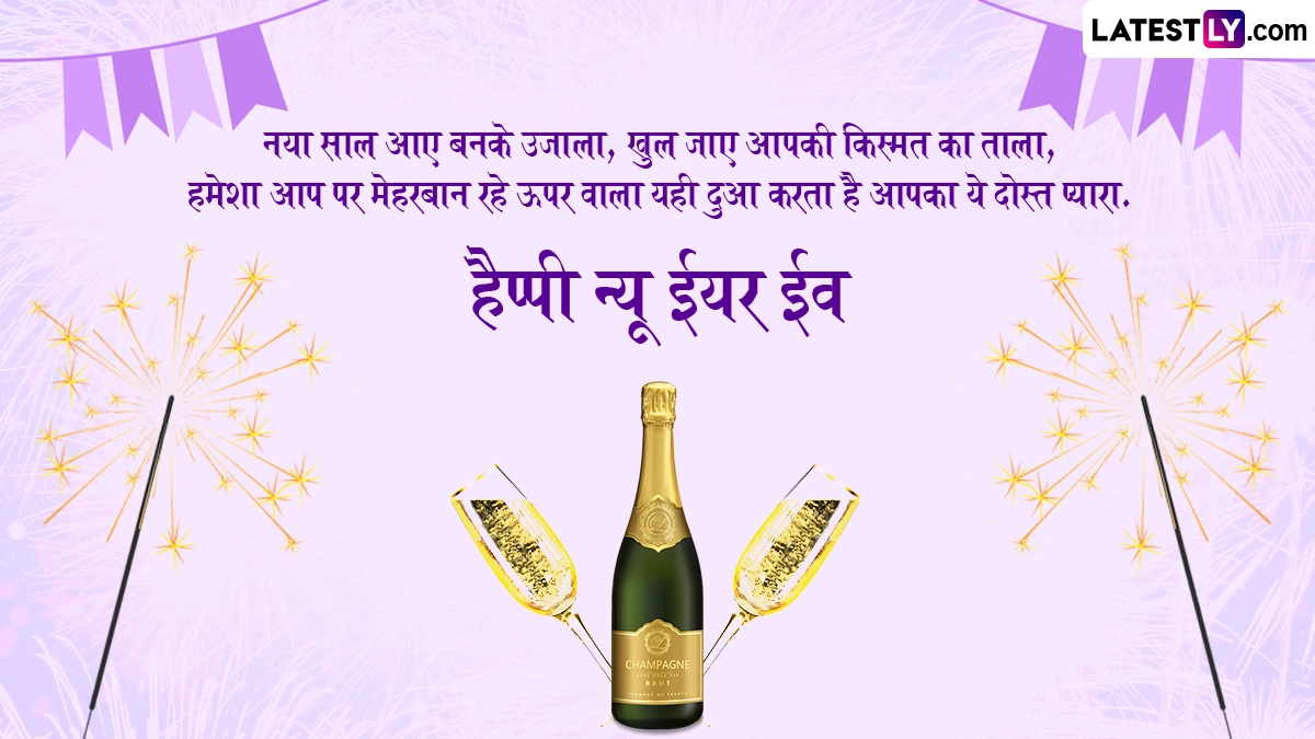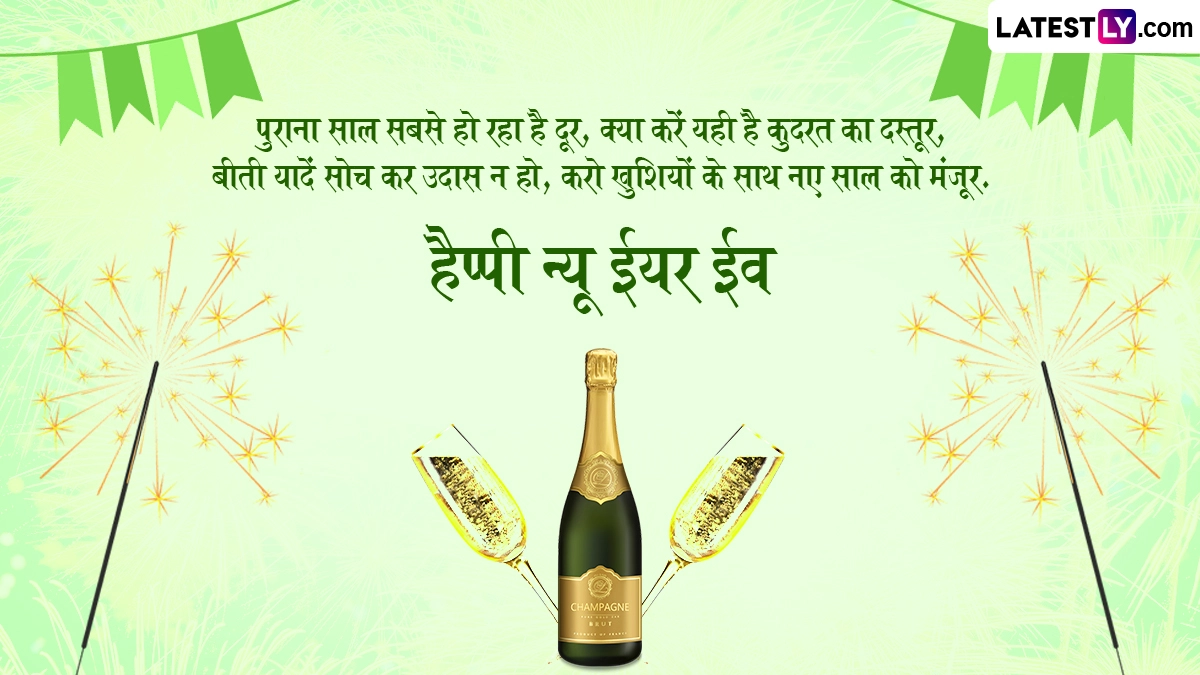 पुराने साल को अलविदा कहने और नए साल का स्वागत करने के लिए नए साल की पूर्व संध्या यानी 31 दिसंबर को लोग शानदार पार्टियों और दावतों का आयोजन करते हैं. इसके साथ ही लोग सोशल मीडिया के जरिए दोस्तों-रिश्तेदारों को बधाई देते हैं. ऐसे में आप भी इन खास अवसर पर इन शानदार हिंदी मैसेजेस, वॉट्सऐप विशेज, शायरी, जीआईएफ ग्रीटिंग्स और फोटो एसएमएस को भेजकर प्रियजनों से हैप्पी न्यू ईयर ईव कह सकते हैं.