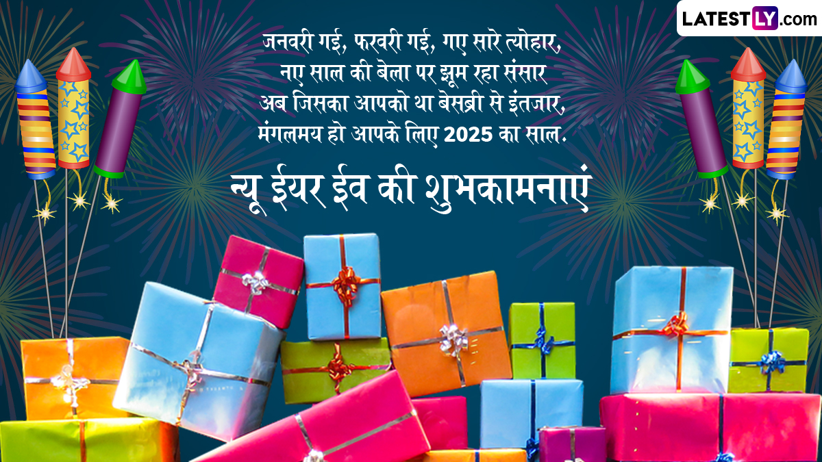 New Year Eve 2025 Wishes in Hindi: दुनियाभर के अधिकांश देशों में 1 जनवरी से नए साल (New Year) की शुरुआत होती है, लेकिन इसका जश्न 31 दिसंबर की रात यानी न्यू ईयर ईव (New Year Eve) पर ही शुरु हो जाती है. नए साल की पूर्व संध्या पर देश और दुनिया भर में अधिकांश लोग अपने घरों में पार्टी करते हैं या फिर किसी इवेंट में शामिल होते हैं. नए साल के आगमन से ठीक पहले पार्टियों का आयोजन किया जाता है और जमकर नाच-गाना होता है, फिर जैसे ही घड़ी की सुइयां रात 12 बजे पर आकर रुकती हैं, हर कोई दिल खोलकर, अपनी बाहें फैलाकर नए साल का स्वागत करता है. दरअसल, साल के आखिरी त्योहार क्रिसमस सेलिब्रेशन के साथ ही नए साल का काउंटडाउन शुरु हो जाता है और लोग नए साल के स्वागत की तैयारियों में जुट जाते हैं. नए साल के स्वागत के लिए लोग कई दिन पहले से ही इसकी प्लानिंग करते हुए तैयारी कर लेते हैं और क्रिसमस सेलिब्रेशन के बाद से ही न्यू ईयर सेलिब्रेशन में जुट जाते हैं.