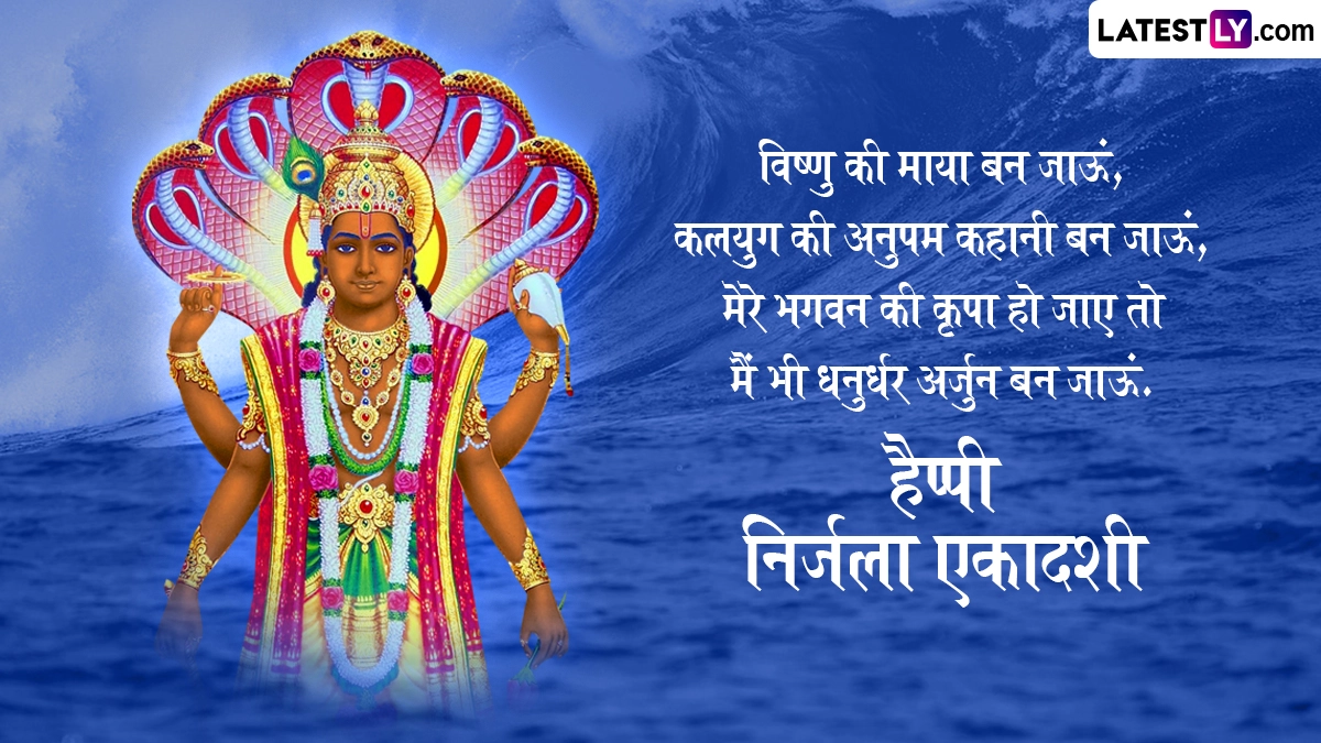 ज्येष्ठ मास के शुक्ल पक्ष की निर्जला एकादशी में व्रती जल और अन्न को ग्रहण नहीं करते हैं. निर्जल व्रत रखकर भक्त विधि-विधान से भगवान विष्णु की पूजा-अर्चना करते हैं और रात्रि जागरण कर भजन-कीर्तन किया जाता है. इसके बाद द्वादशी तिथि को व्रत का पारण किया जाता है. इस अवसर पर आप इन भक्तिमय हिंदी मैसेजेस, कोट्स, वॉट्सऐप विशेज, फेसबुक ग्रीटिंग्स के जरिए अपनों को हैप्पी निर्जला एकादशी कह सकते हैं.