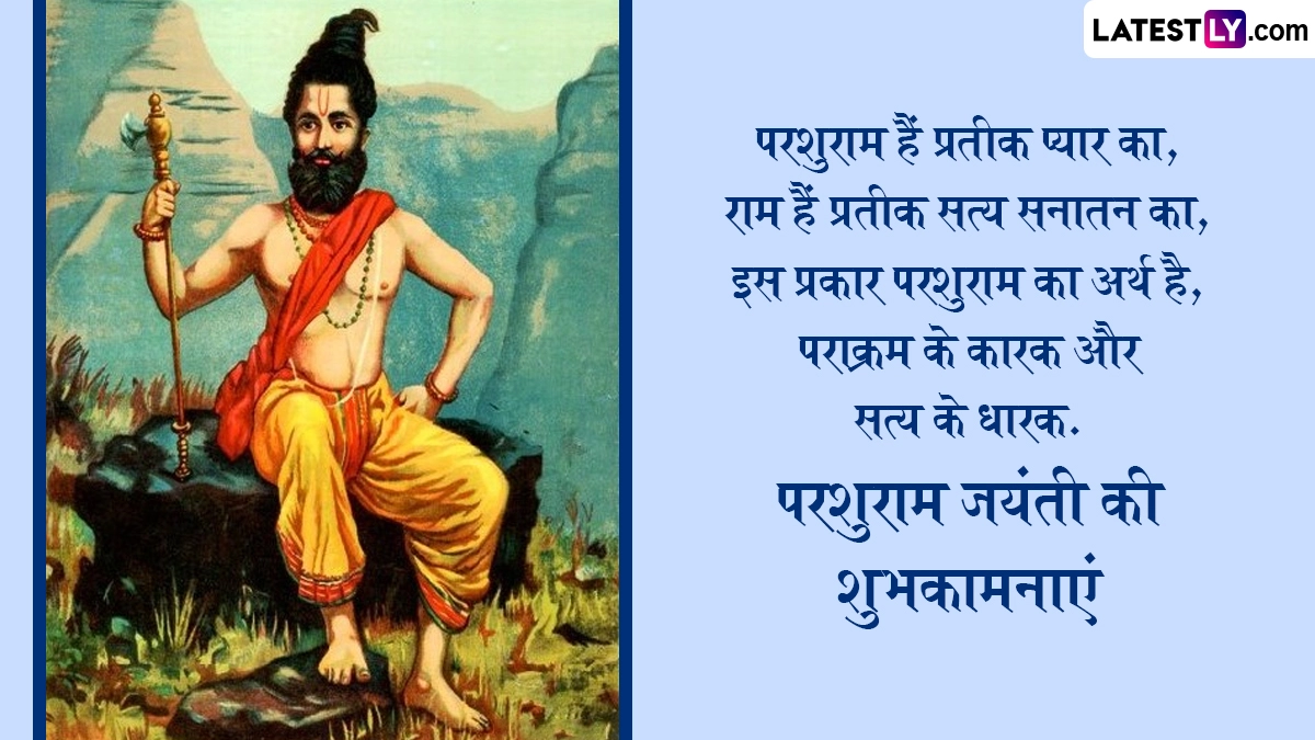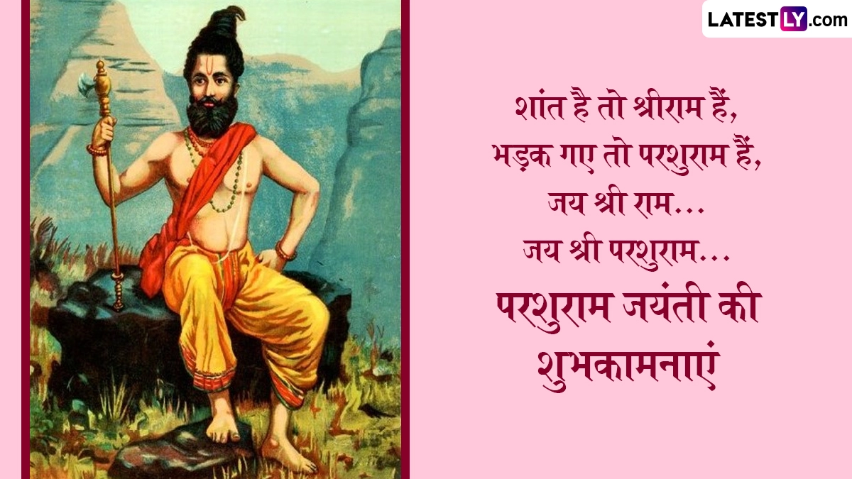भगवान परशुराम को चिरंजीवी माना गया है, जो आज भी धरती पर मौजूद हैं. मान्यता है कि भगवान विष्णु के 10 अवतारों में से सिर्फ परशुराम अवतार ही धरती पर निवास करते हैं. धरती पर पापी राजाओं और दुष्टों का संहार करने के लिए भगवान विष्णु ने परशुराम के रूप में छठा अवतार लिया था. परशुराम जयंती पर आप इन हिंदी मैसेजेस, कोट्स, वॉट्सऐप विशेज, जीआईएफ ग्रीटिंग्स, फोटो एसएमएस के जरिए शुभकामनाएं दे सकते हैं.