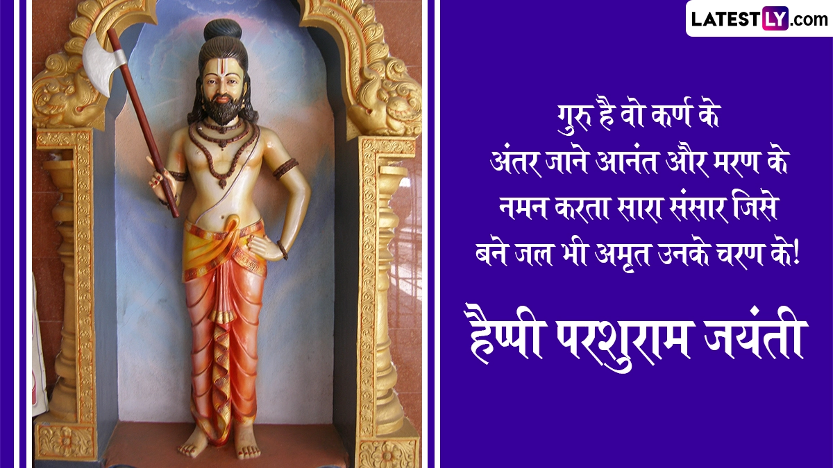 वैशाख शुक्ल तृतीया को भगवान परशुराम की जयंती मनाई जाती है. इस पावन अवसर पर भक्त साहस और शक्ति की प्राप्ति के लिए व्रत रखते हैं, साथ ही आज के इस डिजिटल युग में शुभकामना संदेशों का आदान-प्रदान किया जाता है. ऐसे में आप भी इन हिंदी मैसेजेस, कोट्स, वॉट्सऐप विशेज, फेसबुक ग्रीटिंग्स के जरिए अपनों से हैप्पी परशुराम जयंती कह सकते हैं.