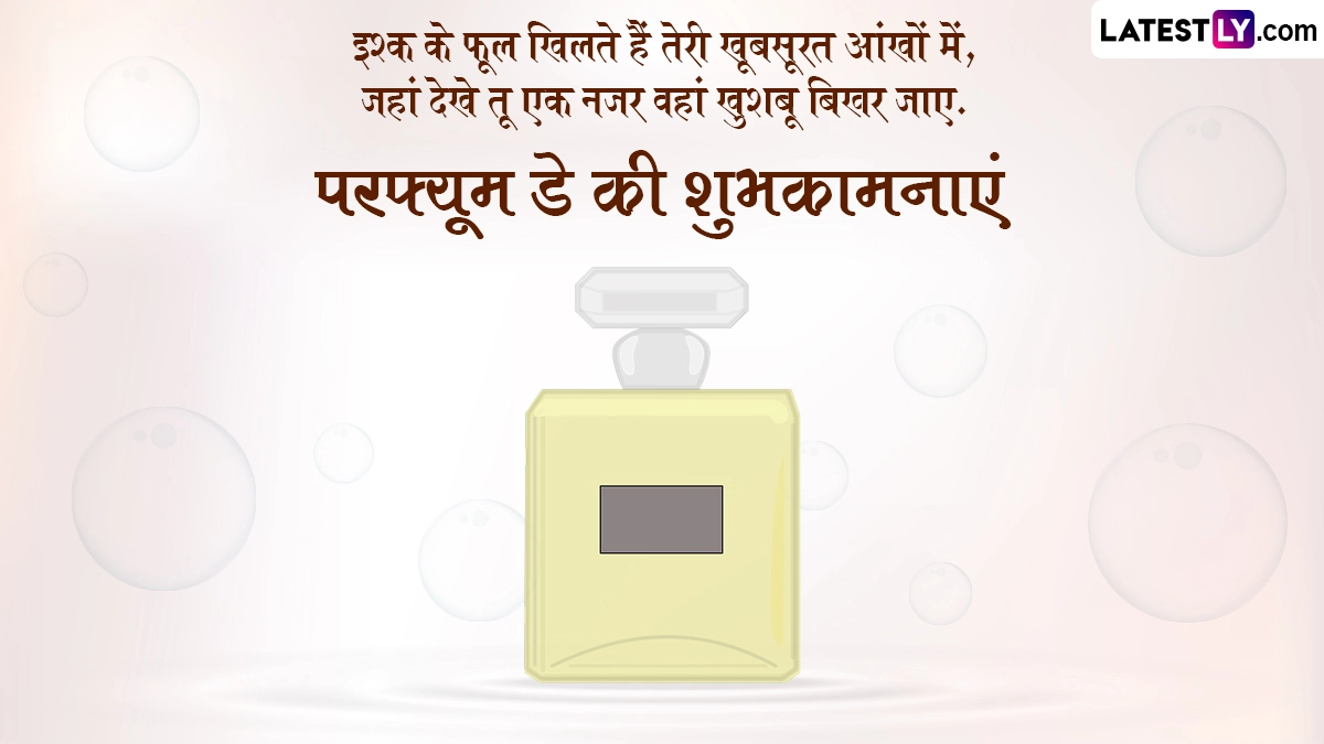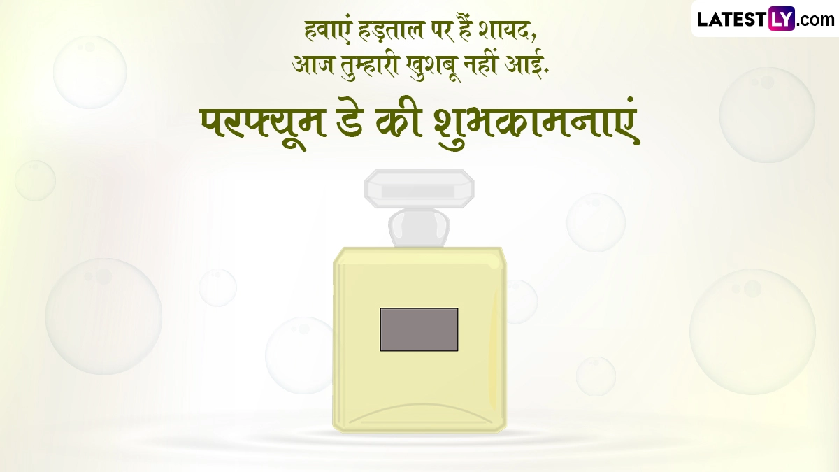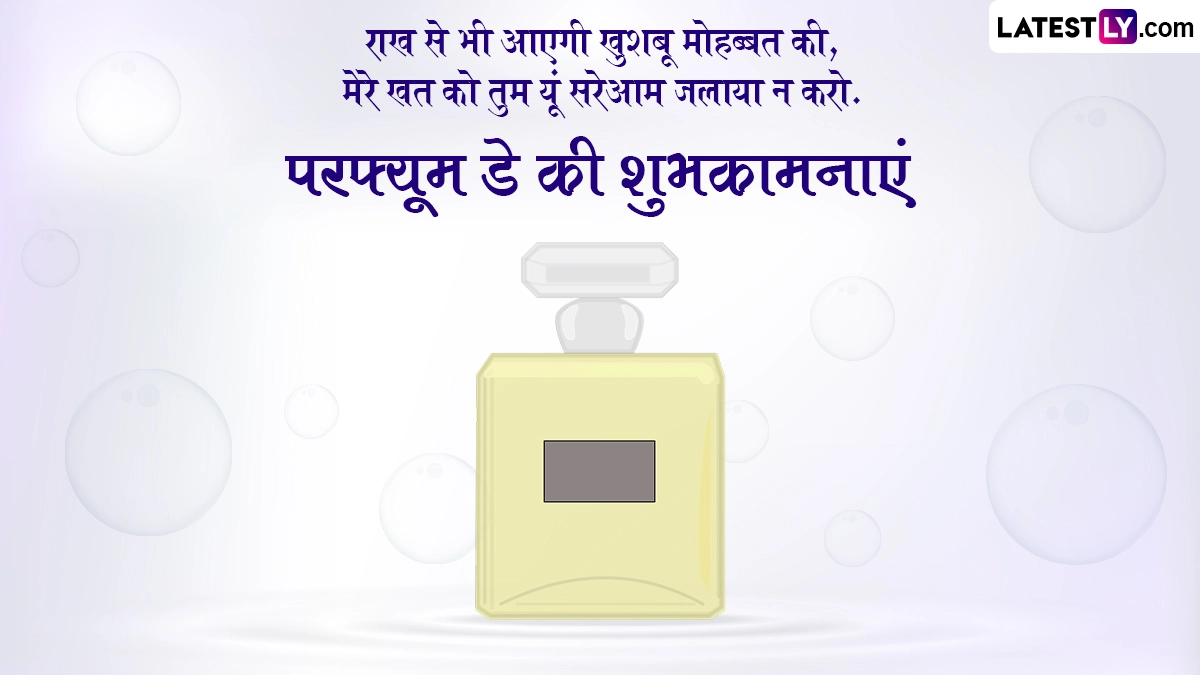 Perfume Day 2024 Wishes in Hindi: एंटी-वैलेंटाइन वीक (Anti-Valentine Week) के तीसरे दिन यानी 17 फरवरी को परफ्यूम डे (Perfume Day) मनाया जाता है. एंटी-वैलेंटाइन प्यार में धोखा खाए, बेवफाई के शिकार हुए या फिर सिंगल लोग सेलिब्रेट करते हैं. स्लैप डे (Slap Day) और किक डे (Kick Day) के बाद परफ्यूम डे पर कपल्स अपने पार्टनर को परफ्यूम (Perfume) उपहार में देकर अपनी भावनाओं का इजहार करते हैं. पार्टनर के अलावा दोस्तों के साथ भी इस दिन को सेलिब्रेट किया जाता है. अगर आप भी एंटी-वैलेंटाइन वीक के हर दिन को सेलिब्रेट कर रहे हैं तो आप परफ्यूम डे पर अपने पार्टनर को उनके पसंद के अनुसार परफ्यूम दे सकते हैं. इसके अलावा जो लोग प्यार में हैं वो भी अपने पार्टनर को परफ्यूम गिफ्ट करके अपनी भावनाओं का इजहार कर सकते हैं यानी इस डे को हर कोई अपने-अपने अंदाज में सेलिब्रेट कर सकता है.