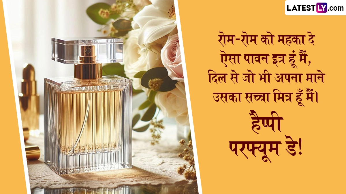 Perfume Day 2025 Wishes: एंटी वैलेंटाइन वीक की शुरुआत 15 फरवरी को स्लैप डे से होती है और 21 फरवरी को ब्रेक-अप डे के साथ खत्म होती है. इनमें से एक दिन परफ्यूम डे (Perfume Day 2025) है, जो 17 फरवरी को मनाया जाता है और यह खुद को लुभावनी खुशबू से घेरने का एक बेहतरीन मौका है. परफ्यूम आपके लुक को भी निखार सकता है. यह इस्तेमाल करने वाले पर एक अमिट छाप छोड़ता है और एक परिचित एहसास पैदा करता है. परफ्यूम ओरिएंटल और वुडी से लेकर फ्लावरी और फ्रूटी तक होते हैं. यह किसी की भी अलमारी में एक खूबसूरत स्पर्श जोड़ता है और संभवतः एक विशिष्ट वस्तु बन सकता है.