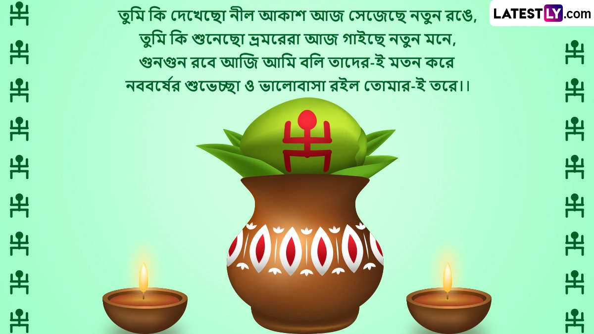 पोइला बैसाख के दिन बच्चों से लेकर बड़ों तक हर कोई अपने घर के बड़े-बुजुर्गों के चरण स्पर्श कर उनका आशीर्वाद लेते हैं. इस दिन लोग अपने रिश्तेदारों और करीबियों को मिठाई व अन्य उपहार देते हैं. इसके साथ ही बंगाली में शुभो नोबो बोरसो कहकर नए साल की बधाई देते हैं. ऐसे में आप भी पोइला बैसाख के ये शानदार विशेज, इमेजेस, वॉट्सऐप स्टिकर्स, जीआईएफ ग्रीटिंग्स, एचडी वॉलपेपर्स को शेयर कर बंगाली में शुभो नोबो बोरसो 1431 की शुभकामनाएं दे सकते हैं.