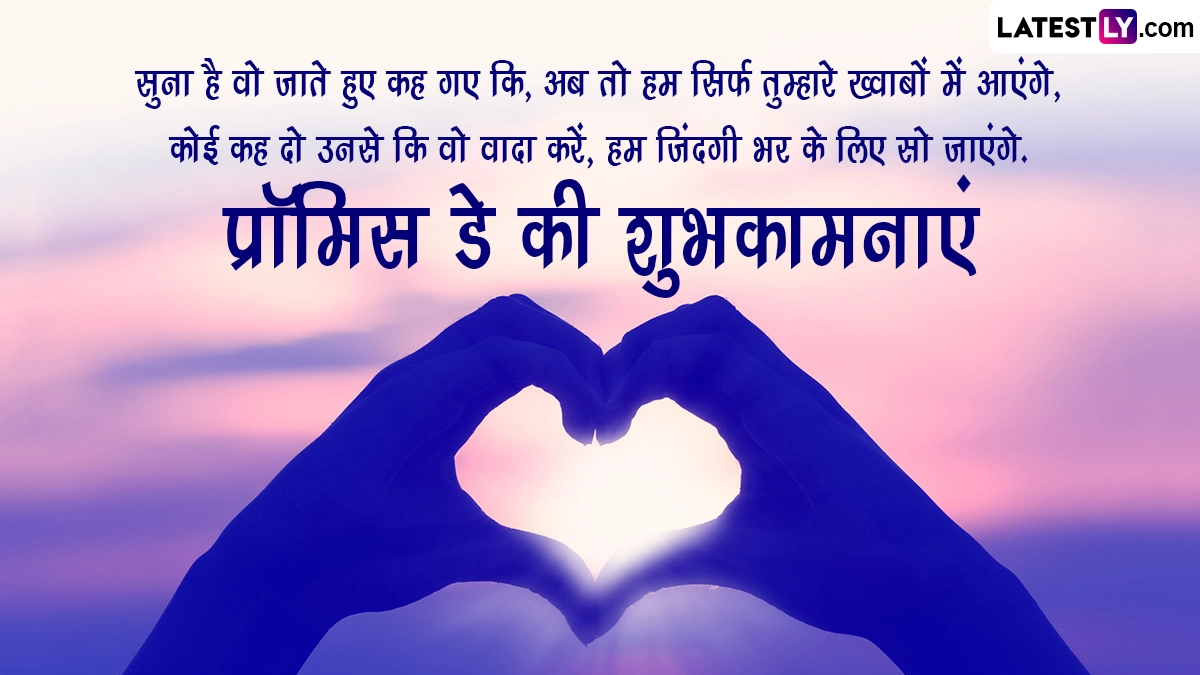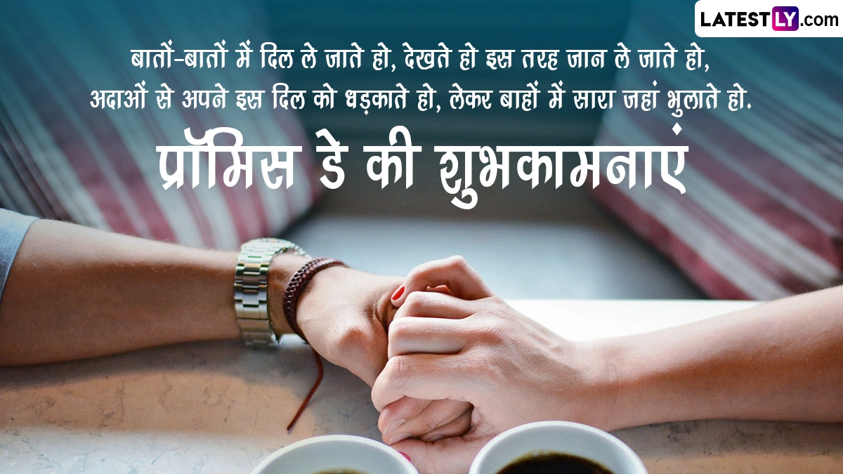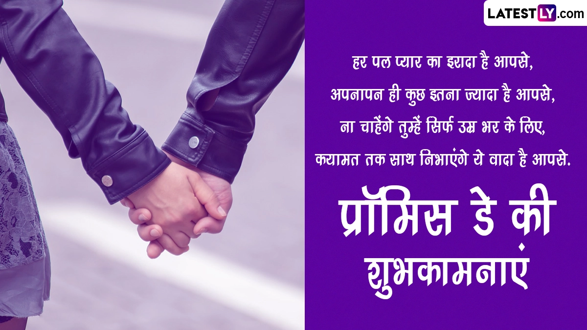 वैलेंटाइन वीक के दौरान प्रॉमिस डे पर कपल्स एक-दूसरे से जीवन भर प्यार और एक-दूसरे का साथ निभाने का वादा करते हैं. इसके साथ ही एक-दूजे को रिझाने के लिए गिफ्ट देते हैं और हाल-ए-दिल बयां करने के लिए शुभकामना संदेशों का सहारा लेते हैं. प्रॉमिस डे पर आप भी इन हिंदी विशेज, शायरी, वॉट्सऐप मैसेजेस, फेसबुक ग्रीटिंग्स और फोटोज के जरिए अपने पार्टनर से प्यार का वादा कर सकते हैं.