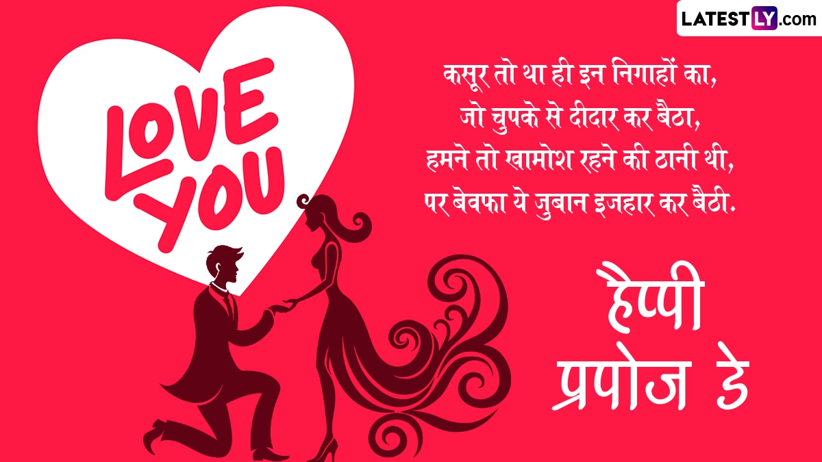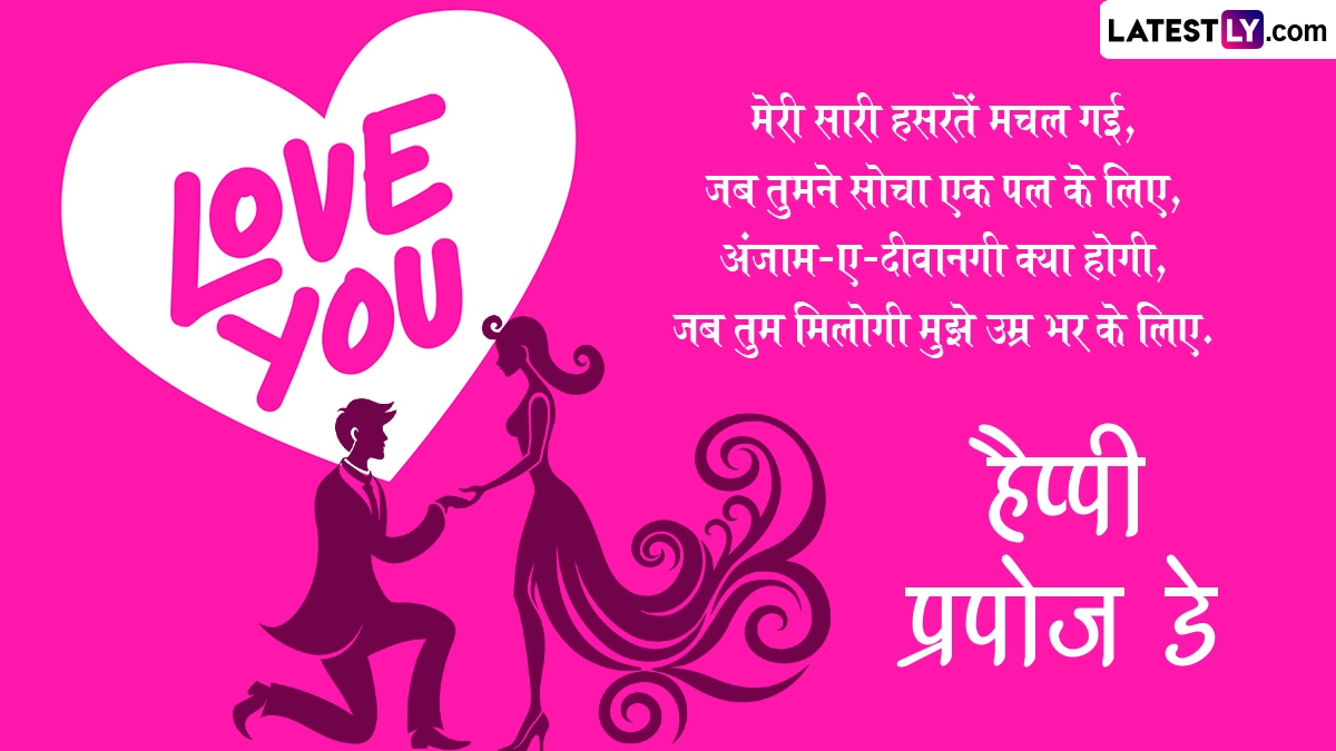 Propose Day 2025 Messages in Hindi: प्यार के महीने (Month Of Love) में 7 फरवरी से 14 फरवरी तक मनाए जाने वाले वैलेंटाइन वीक (Valentine's Week) का दूसरा दिन प्रपोज डे (Propose Day) होता है. इस दिन लोग उस शख्स के सामने अपने प्यार का इजहार करते हैं, जिसे वो अपना पार्टनर बनाना चाहते हैं. रोज डे (Rose Day) मनाने के बाद 8 फरवरी को प्रपोज डे मनाया जाता है. रोज डे के दिन अपने क्रश या पार्टनर को लोग गुलाब का फूल देकर उनका दिल जीतने की कोशिश करते हैं, फिर वैलेंटाइन वीक के दूसरे दिन यानी प्रपोज डे पर लोग अपने पार्टनर से अपने दिल की बात कहते हैं या फिर अपने प्यार का इजहार करते हैं. इस दिन कई लोग घुटने के बल बैठकर अपने प्यार को प्रपोज करते हैं और उनके सामने अपना हाल-ए-दिल बयां करते हैं.