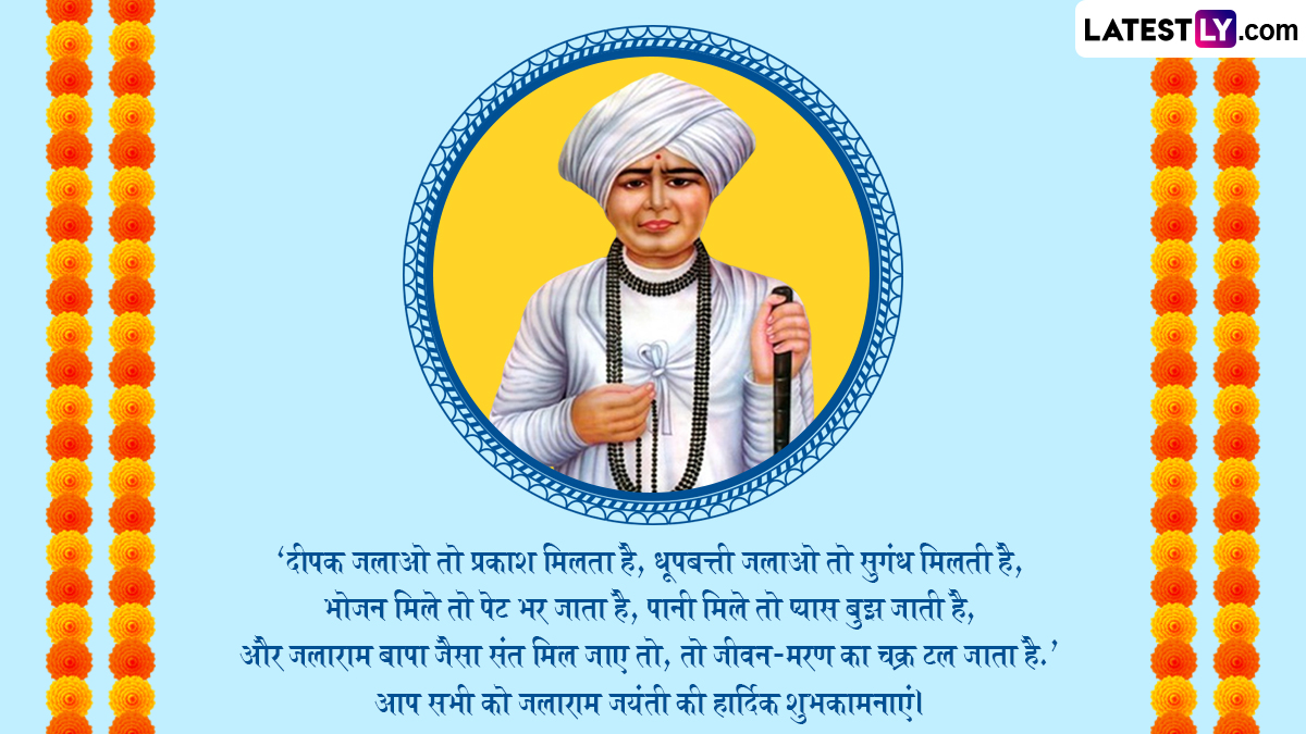 जलाराम जयंती करुणा, विनम्रता और निस्वार्थ सेवा के गुणों की सशक्त स्मृति कराती है. भक्त उनके पदचिन्हों पर चलकर, दान-पुण्य जैसे धर्म कार्य करके और उनके सम्मान में प्रार्थना करके इस दिन को सेलिब्रेट करते हैं. इस अवसर पर लोग एक-दूसरे को बधाई संदेश भेजते हैं. आप भी जलाराम बापा की इस जयंती पर अपने प्रियजनों को नीचे दिये कोट्स भेजकर शुभकामनाएं दे सकते हैं.