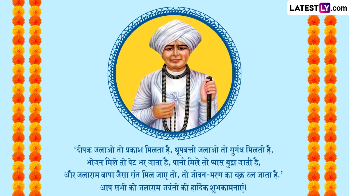 Quotes On Jalaram 226th Jayanti 2025: भारत आदिकाल से संतों की भूमि रही है. इस देश ने ईश्वर सदृश्य महान संतों को जन्म दिया ऐसे ही एक संत जलाराम बापा (Jalaram Bapa) रहे हैं. जलाराम बापा का जन्म कार्तिक मास शुक्ल पक्ष की सप्तमी में गुजरात (Gujarat) के राजकोट (Rajkot) के वीरपुर गांव में हुआ था. उनकी माता का नाम राजबाई ठक्कर था, एवं पिता का नाम प्रधान ठक्कर था. बचपन से ही उन्हें सांसारिक जीवन से विशेष लगाव नहीं था, वे भगवान श्री राम के परम भक्त थे. 18 वर्ष की आयु में तीर्थ यात्रा से लौटने के बाद, वह फतेहपुर के भोज भगत के शिष्य बन गए. अंग्रेजी कैलेंडर के अनुसार इस वर्ष 29 अक्टूबर 2025 को जलाराम बापा की 226 वीं जयंती मनाई जाएगी.