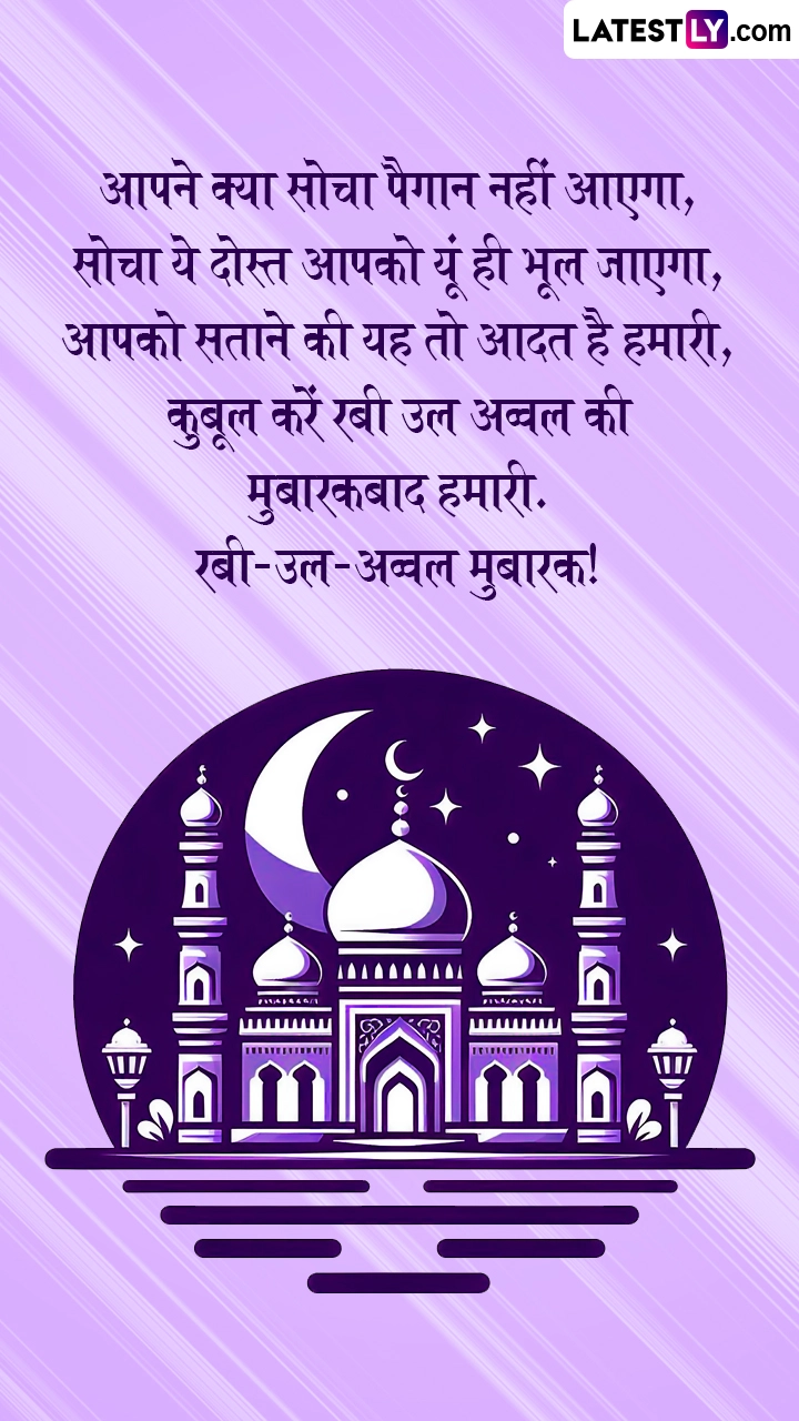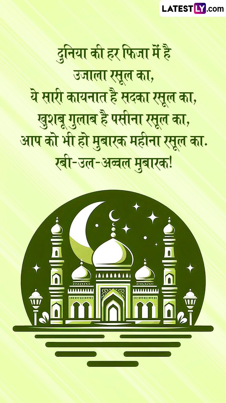 इस्लाम धर्म के महत्वपूर्ण महीनों में शुमार रबी-उल-अव्वल या रबी-अल-अव्वल पैगंबर मुहम्मद के जन्म का महीना है, इसलिए इसका महत्व और ज्यादा बढ़ जाता है. पैंगबर मोहम्मद साहब के जन्म के महीने रबी-उल-अव्वल की शुरुआत के इस खास मौके पर आप इन शानदार हिंदी विशेज, कोट्स, वॉट्सऐप मैसेजेस, फेसबुक ग्रीटिंग्स को प्रियजनों संग शेयर करके उन्हें मुबारकबाद दे सकते हैं.