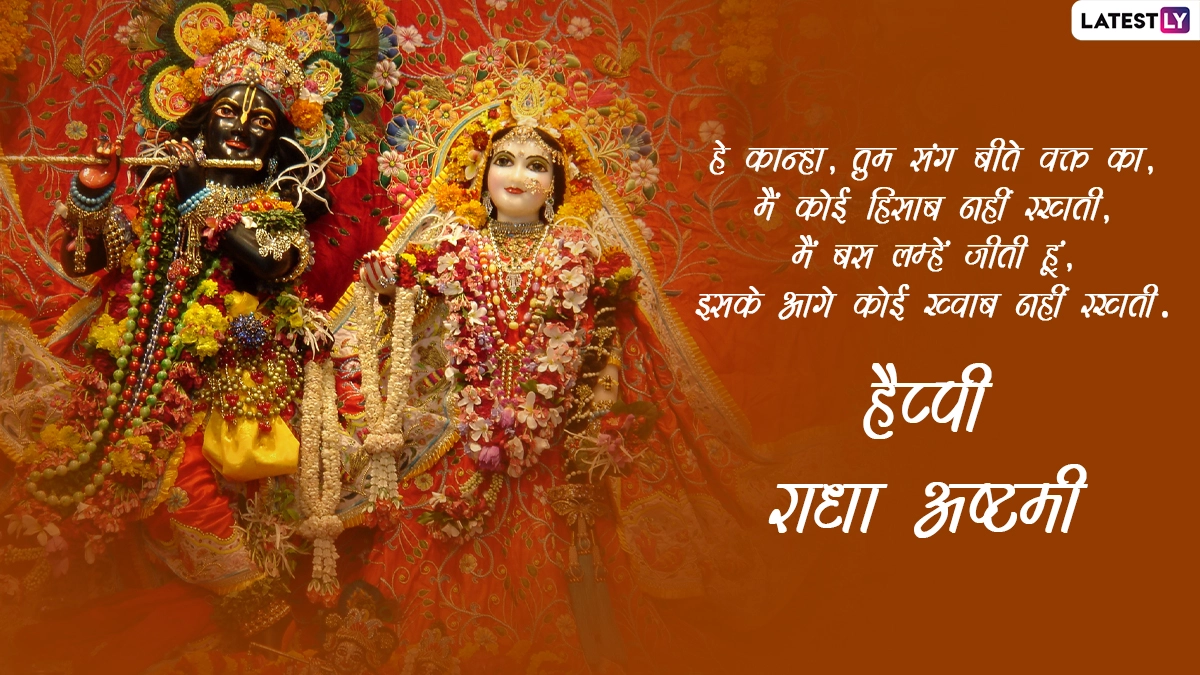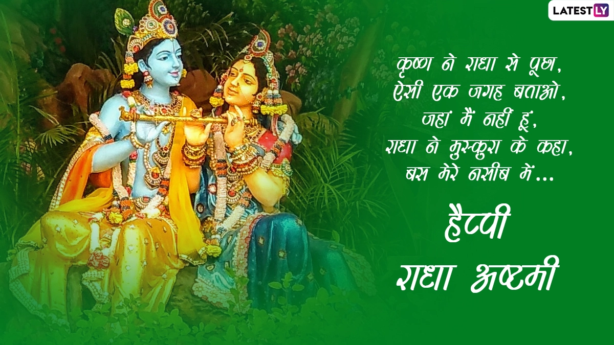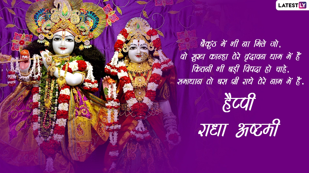 राधा अष्टमी के दिन व्रत रखकर राधा-कृष्ण की पूजा करने से न सिर्फ समस्त मनोकामनाओं की पूर्ति होती है, बल्कि व्यक्ति के समस्त पाप भी नष्ट होते हैं. भक्त राधा रानी के जन्मोत्सव को बहुत धूमधाम से मनाते हैं, ऐसे में आप इस बेहद पावन अवसर पर इन मैसेजेस, कोट्स, जीआईएफ ग्रीटिंग्स, वॉट्सऐप स्टिकर्स और इमेजेस को भेजकर अपनों से हैप्पी राधा अष्टमी कह सकते हैं.
