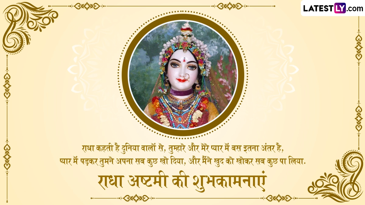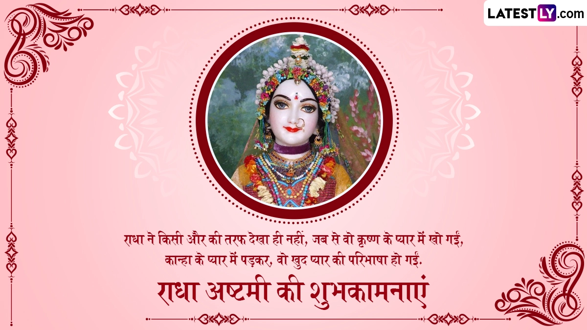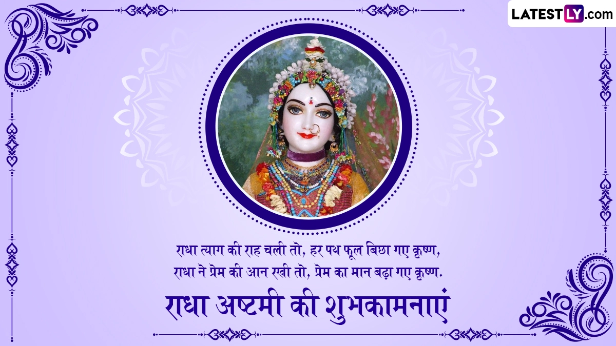 राधा अष्टमी पर राधा रानी की विधि-विधान से पूजा की जाती है. कहा जाता है कि जो भी सच्चे मन से राधा रानी की उपासना करता है, उस पर राधा के साथ-साथ श्रीकृष्ण की कृपा होती है. इसके साथ ही उसे जीवन में सभी प्रकार के सुख-साधनों की प्राप्ति होती है. इस अवसर पर आप इन भक्तिमय विशेज, वॉट्सऐप मैसेजेस, कोट्स, फेसबुक ग्रीटिंग्स के जरिए राधा अष्टमी की शुभकामनाएं दे सकते हैं.