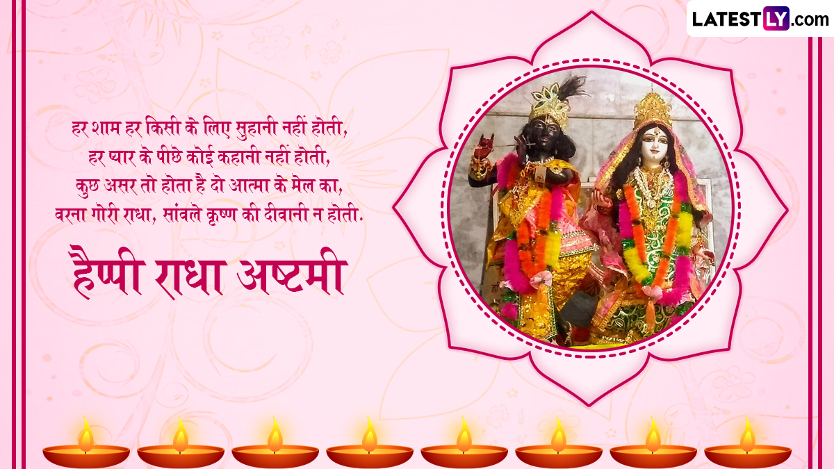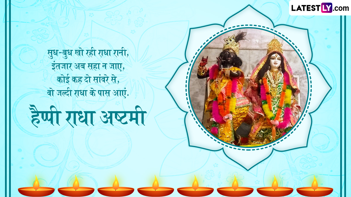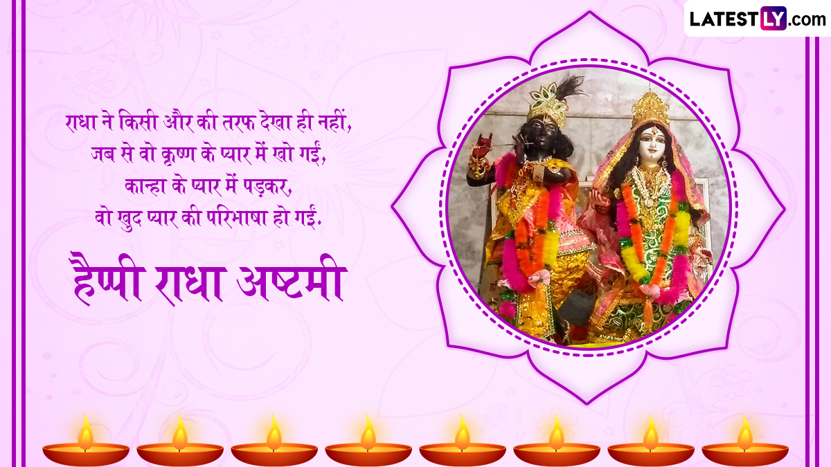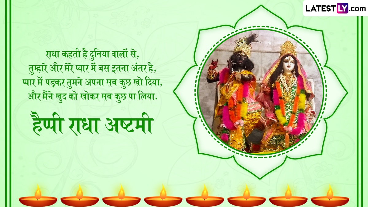 राधा अष्टमी के लिए श्री राधा रानी के मंदिर को बेहद सुंदर ढंग से सजाया जाता है और विधि विधान से राधा रानी की पूजा-अर्चना की जाती है. पौराणिक कहानियों में राधा जी को देवी लक्ष्मी का अवतार माना जाता है. वहीं, राधा जी को प्रकृति देवी भी कहा जाता है. इस पावन अवसर पर आप इन हिंदी मैसेजेस, कोट्स, वॉट्सऐप मैसेजेस, जीआईएफ ग्रीटिंग्स को भेजकर अपनों से हैप्पी राधा अष्टमी कह सकते हैं.