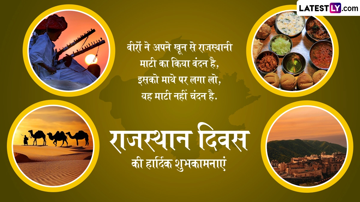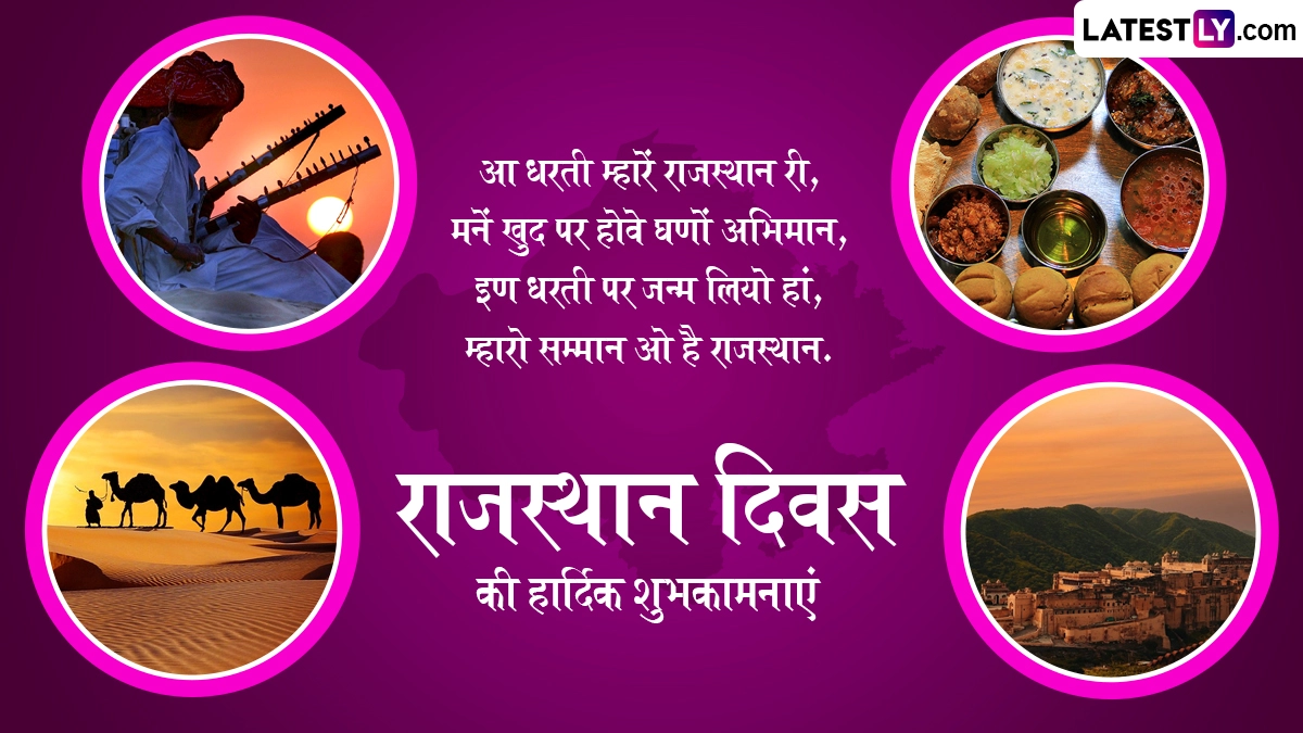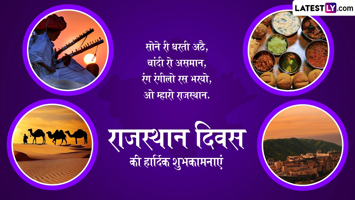 इस साल राजस्थान अपना 75वां स्थापना दिवस मना रहा है. देश के उत्तर-पश्चिम भाग में स्थित इस भूमि को समृद्ध सांस्कृतिक विविधता और आकर्षक स्थलों का घर माना जाता है, इसलिए राजस्थान स्थापना दिवस का जश्न विभिन्न कार्यक्रमों के जरिए मनाया जाता है. इस अवसर पर आप इन हिंदी विशेज, वॉट्सऐप मैसेजेस, कोट्स, फेसबुक ग्रीटिंग्स के जरिए राज्यवासियों को हार्दिक शुभकामनाएं दे सकते हैं.