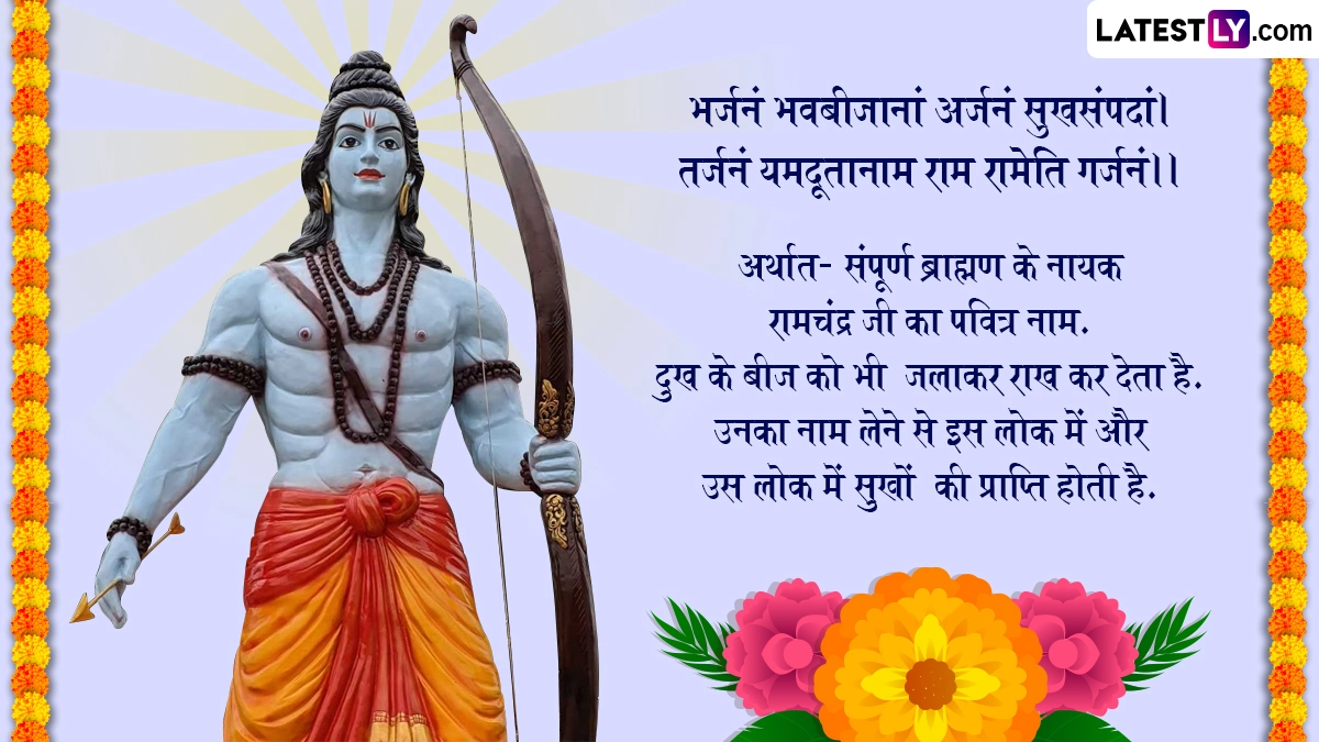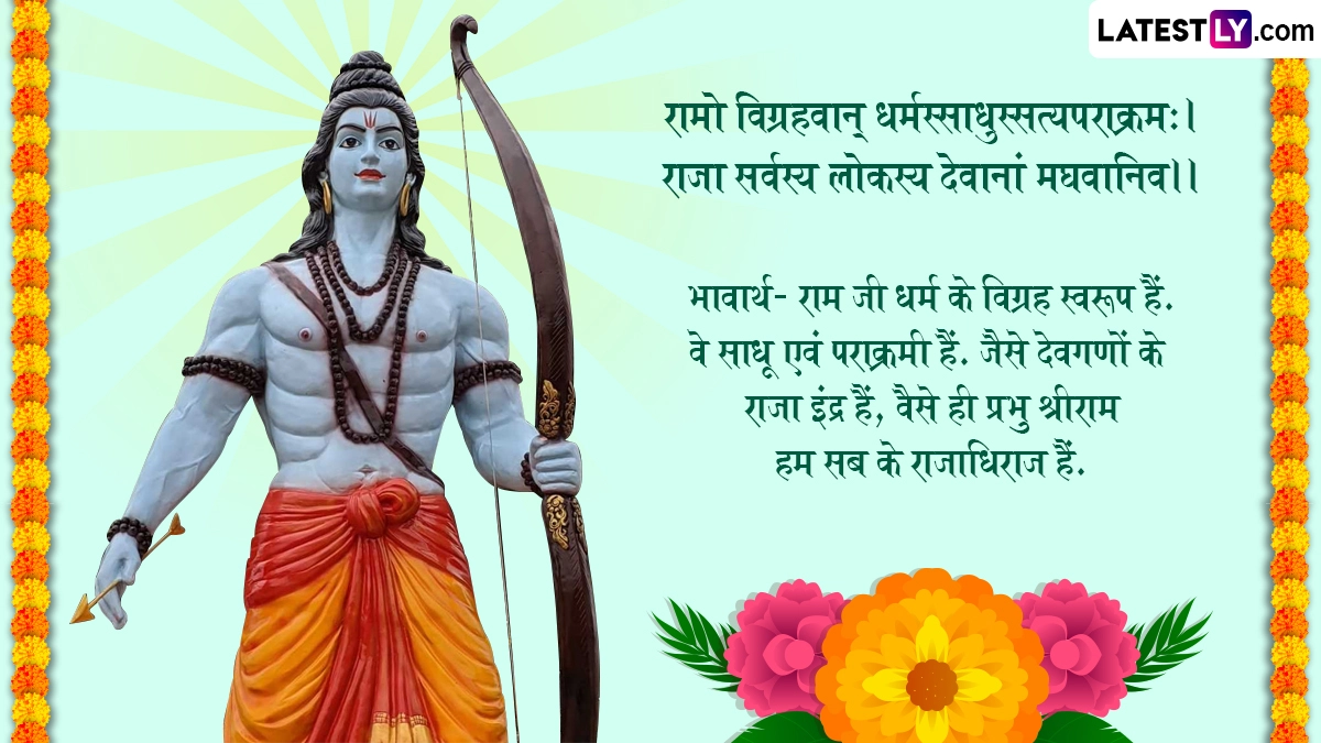 हिंदू धर्म की प्रचलित मान्यताओं के अनुसार, धरती पर राक्षसों और आसुरी प्रवृत्तियों का विनाश करने के लिए ही भगवान विष्णु ने श्रीराम के रूप में सातवां अवतार लिया था, फिर उन्होंने रावण का अंत कर अधर्म पर धर्म की जीत का परचम लहराया. इस मौके पर आप प्रियजनों संग ये शानदार संस्कृत श्लोक, कोट्स, फोटो एसएमएस, वॉट्सऐप स्टिकर्स और मैसेजेस को शेयर कर बधाई दे सकते हैं.